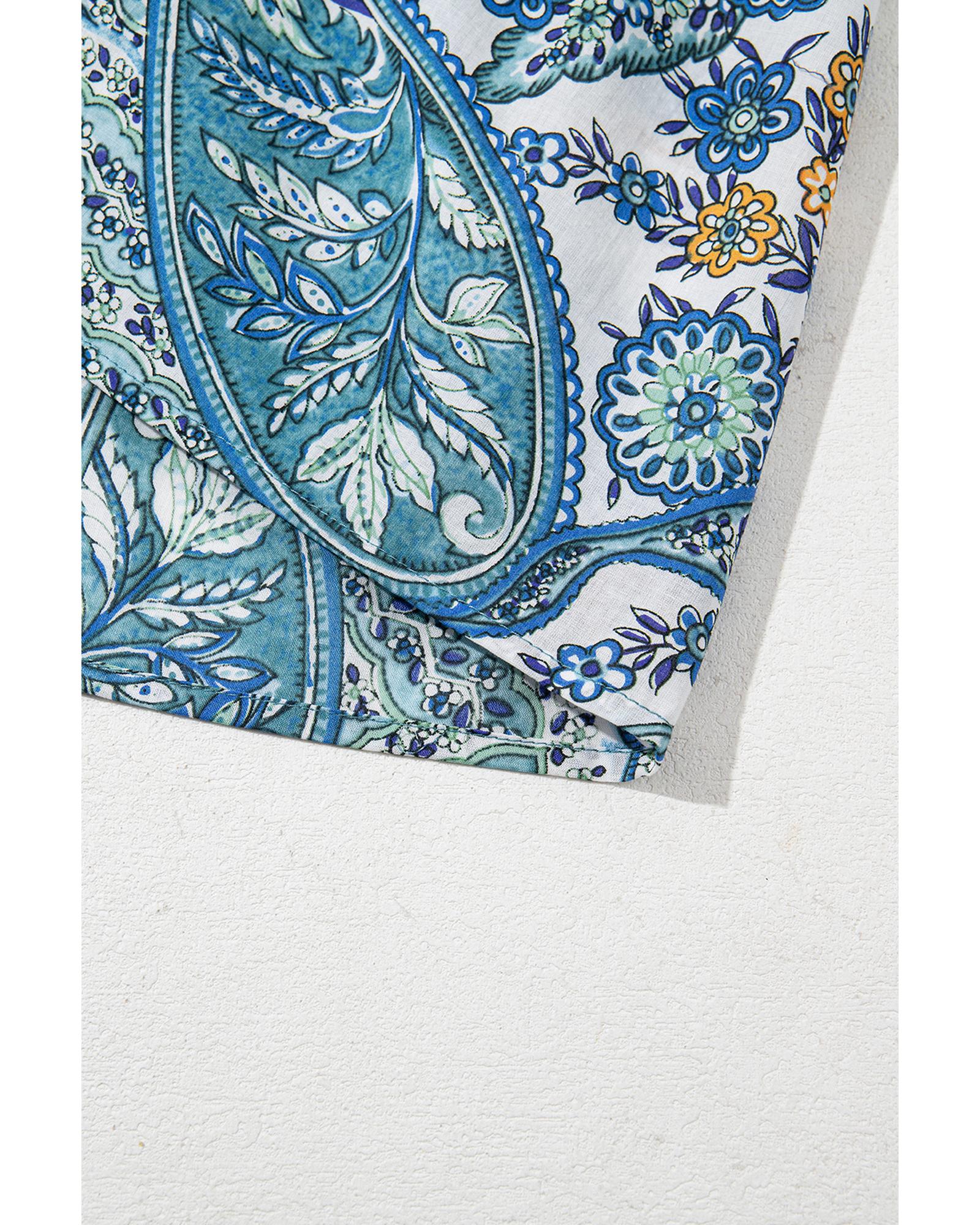 • Blue Bohemian Paisley Floral V Neck Short Sleeve Mini Dress