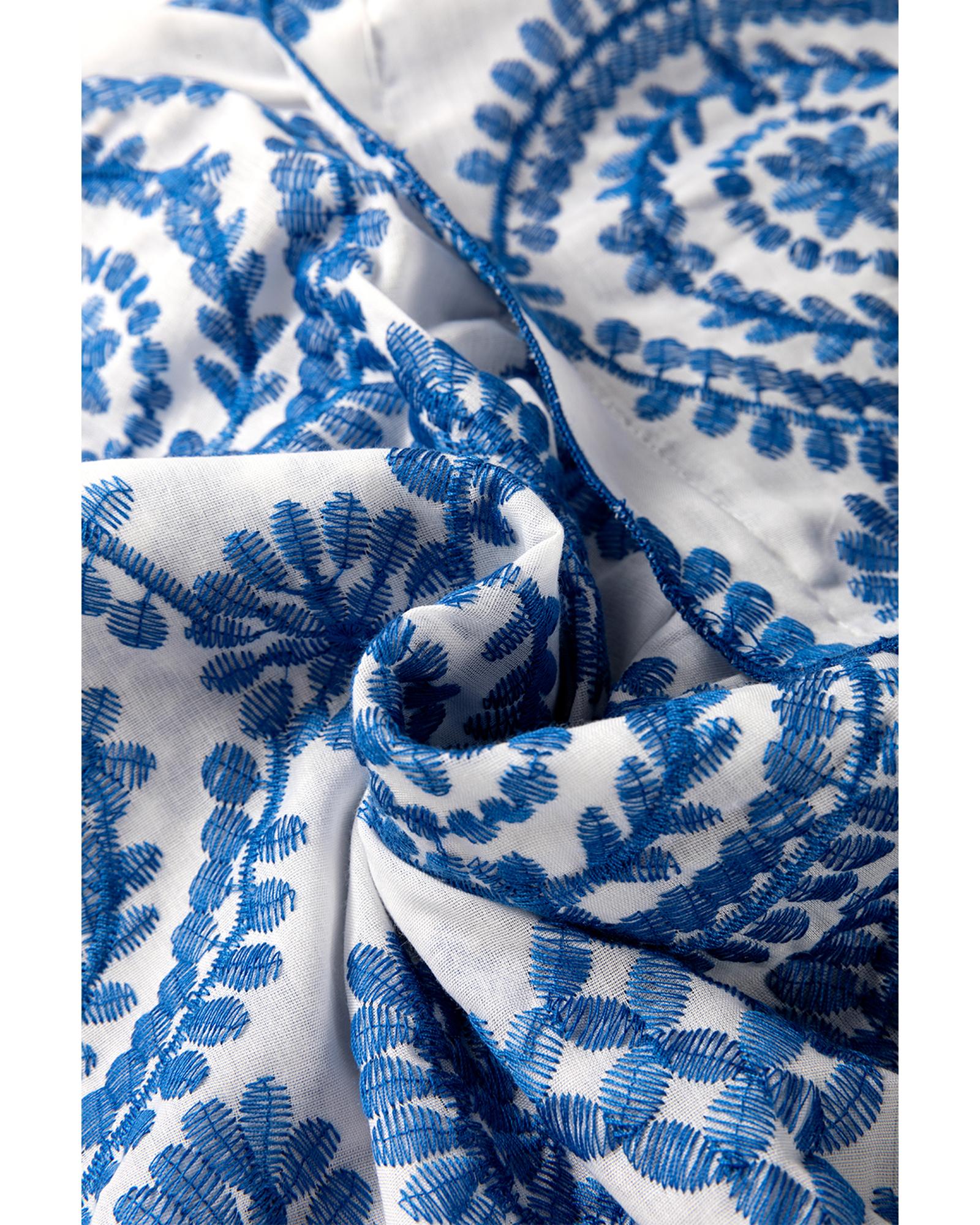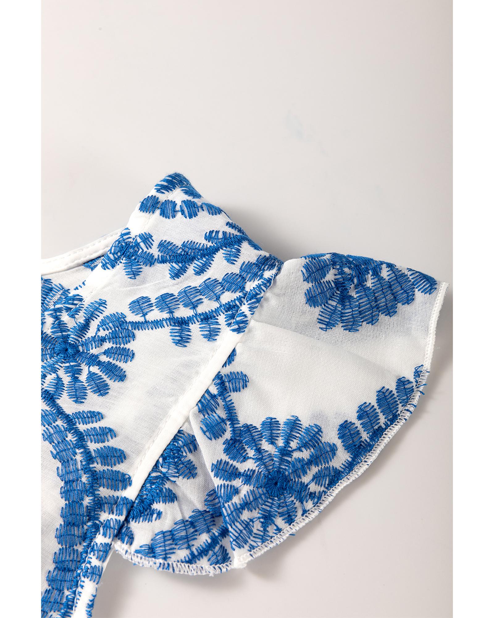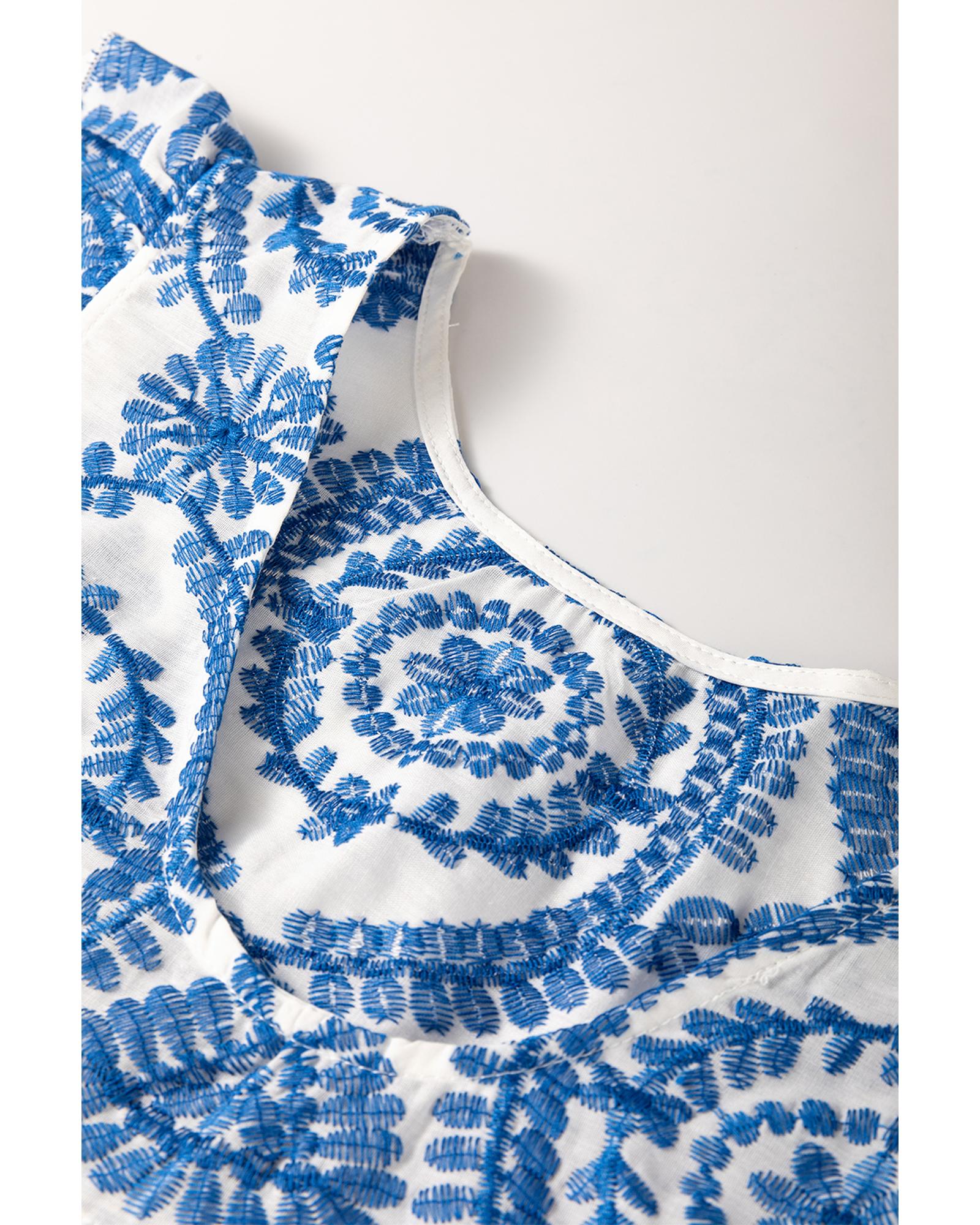 Blue Boho Print Flutter Sleeve Crew Neck Blouse – L