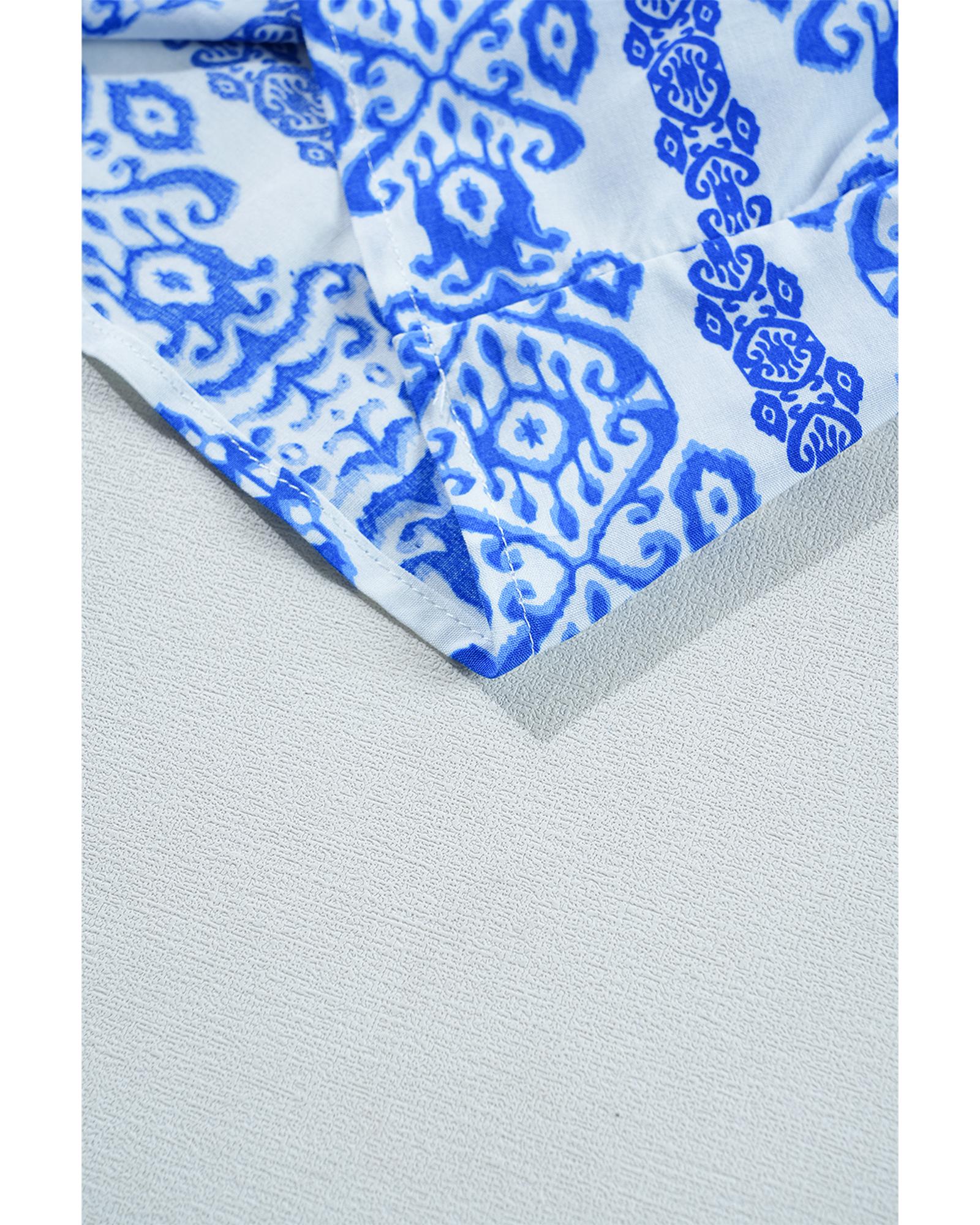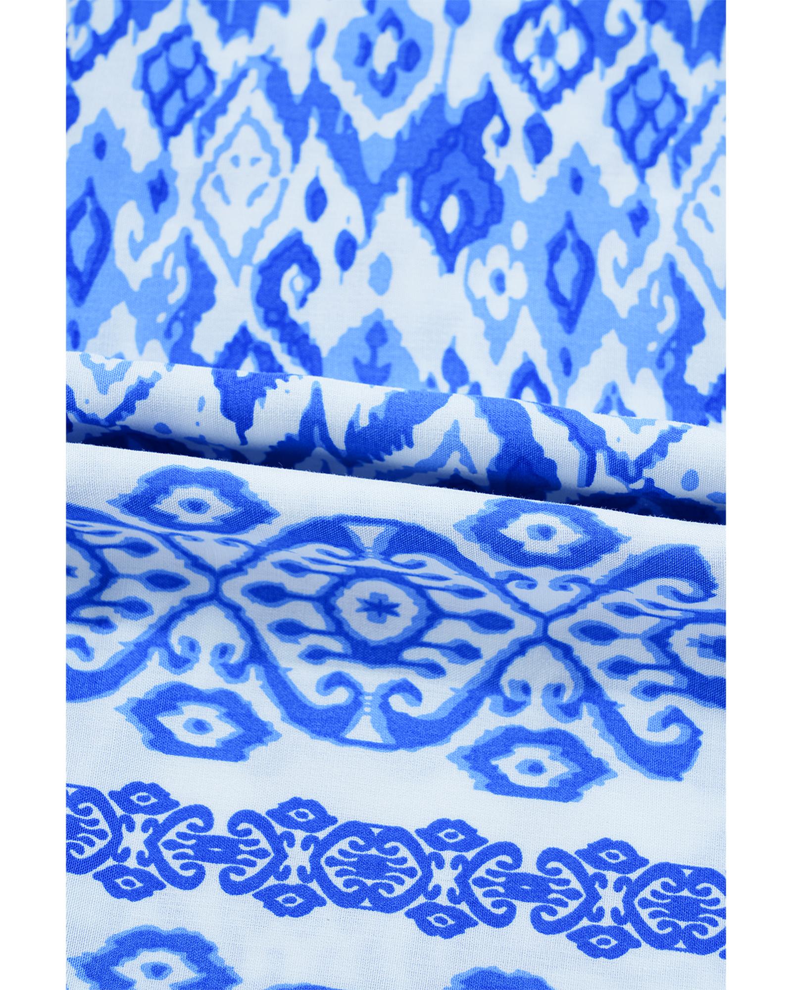 Blue Boho Printed 3/4 Sleeve Tied Neck Blouse – L