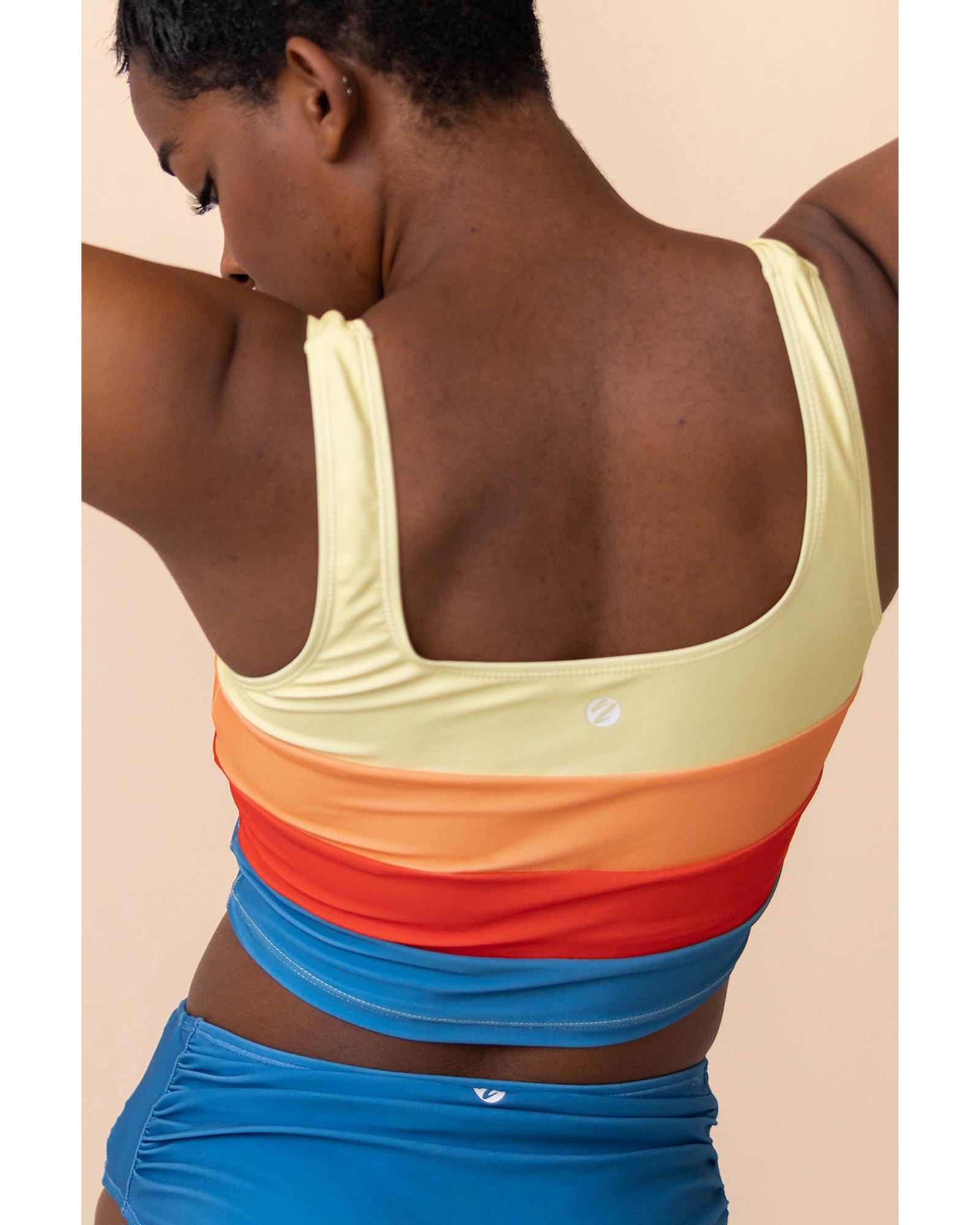 - Chic colorblock design for a trendy look by the pool
