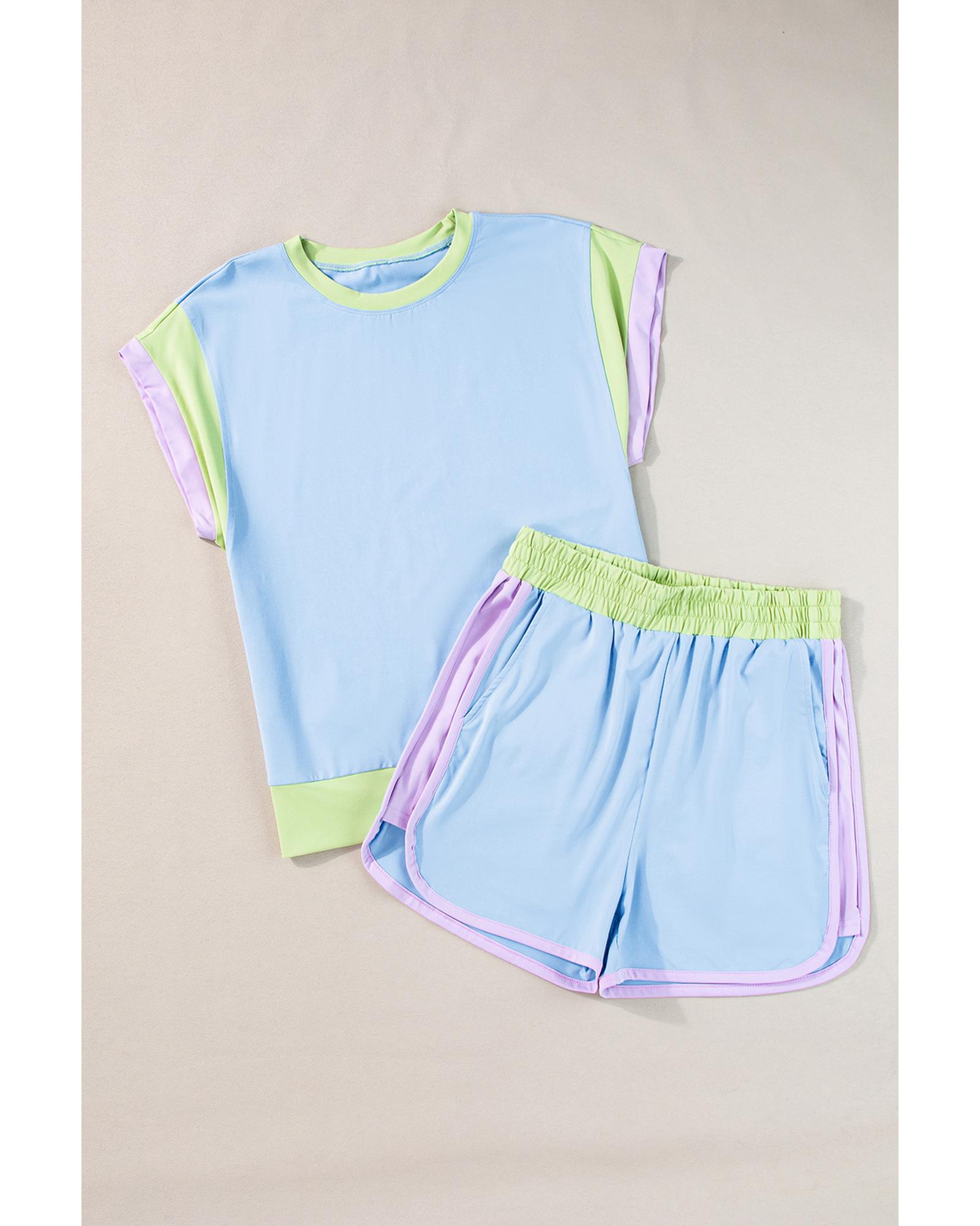 Blue Contrast Trim Cap Sleeve Tee Shorts Set – M