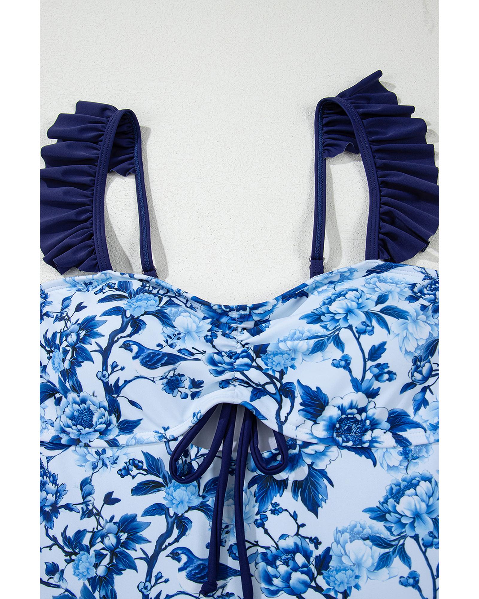 • Flattering ruffled design on the straps
