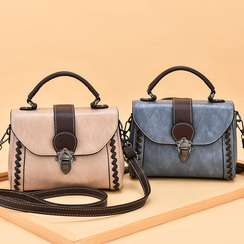 • Chic Vintage-Inspired Design: Features a classic satchel silhouette, accented with elegant braided detailing on the sides and a striking contrast color strap element across the flap. The polished metal turn-lock clasp adds a touch of timeless sophistication.