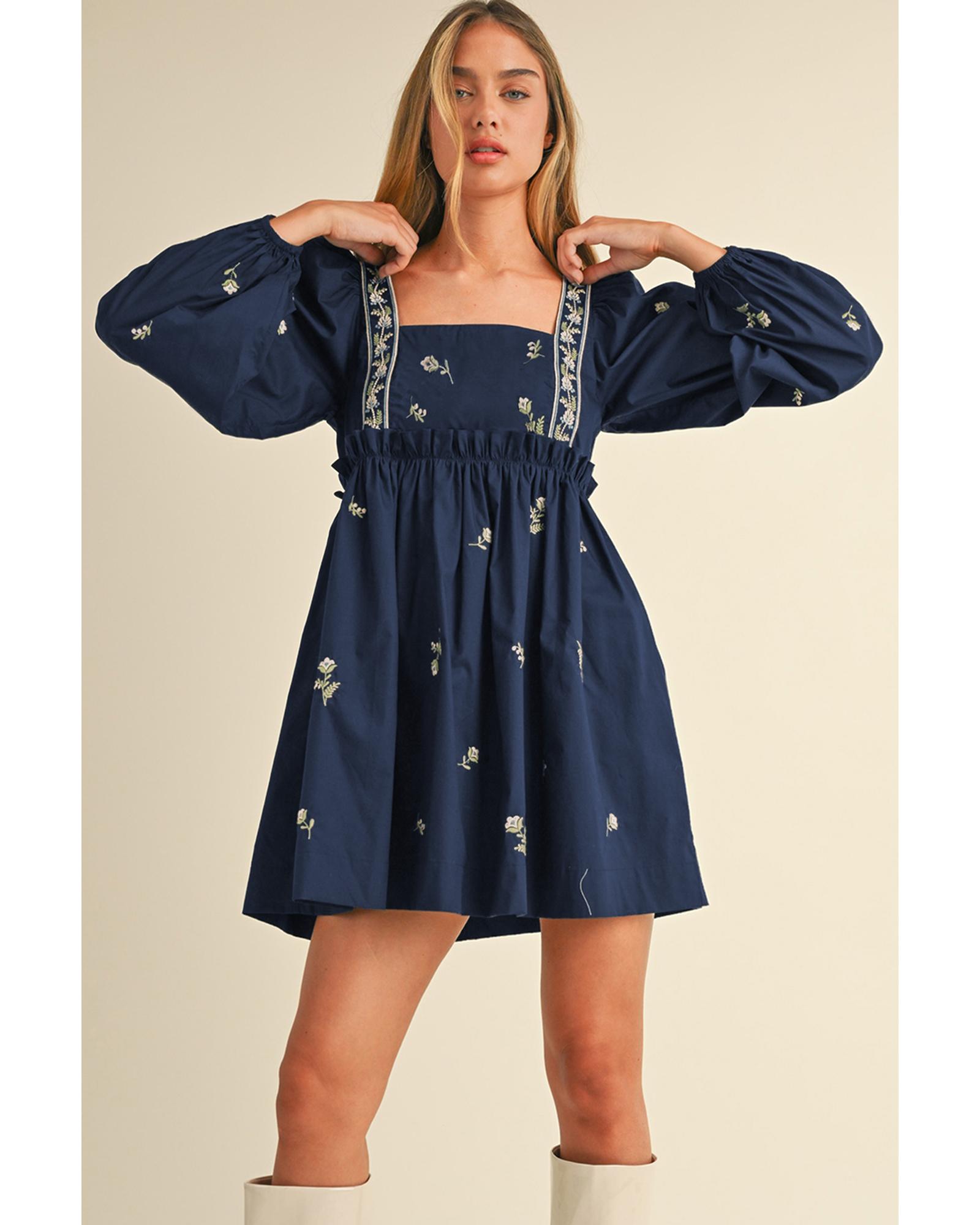 Blue Floral Embroidered Square Neck Puff Sleeve Ruffled Mini Dress - M Original price was: $79.99.Current price is: $43.99.