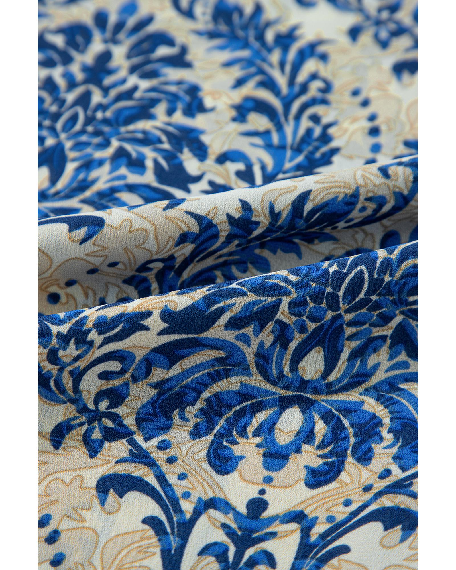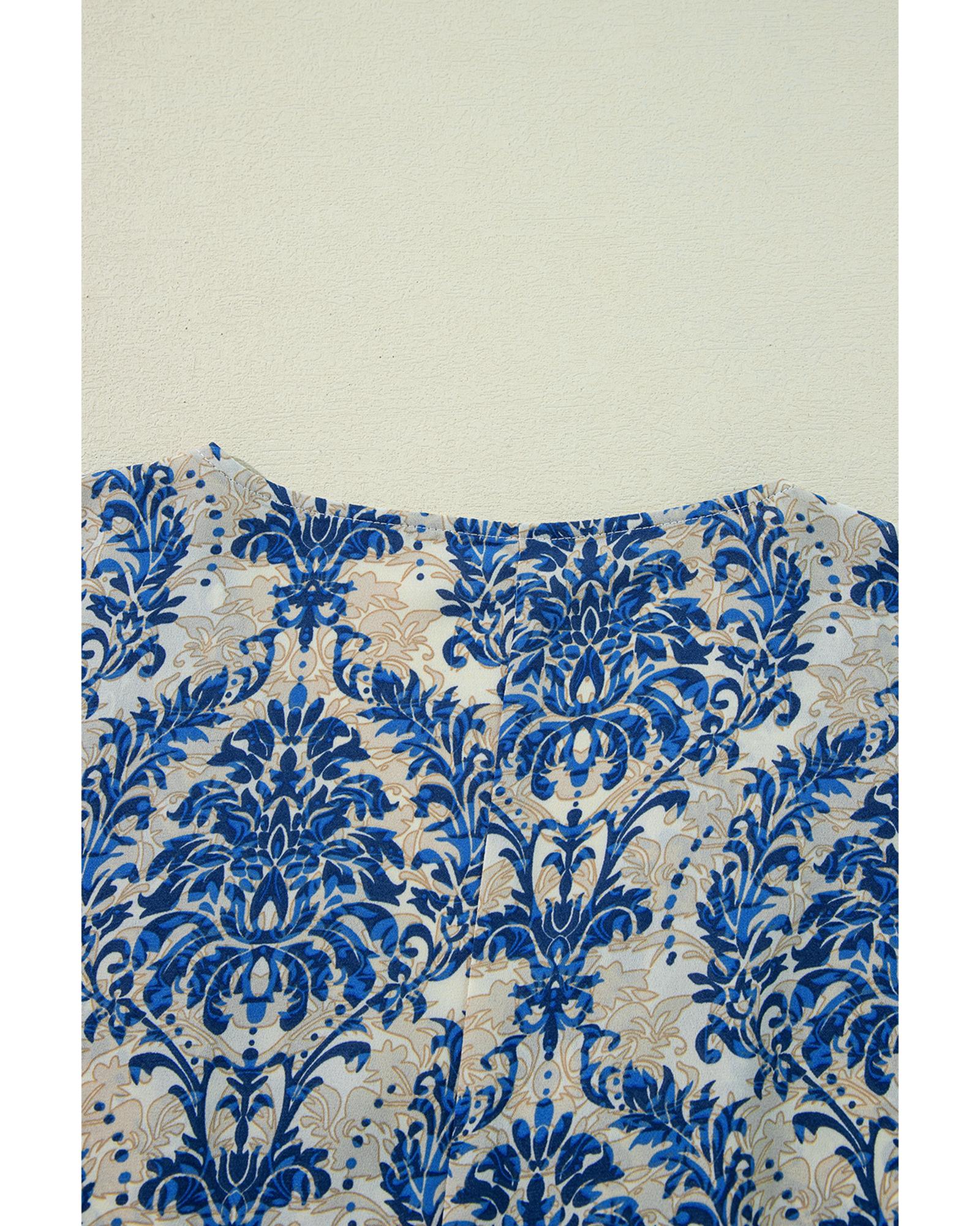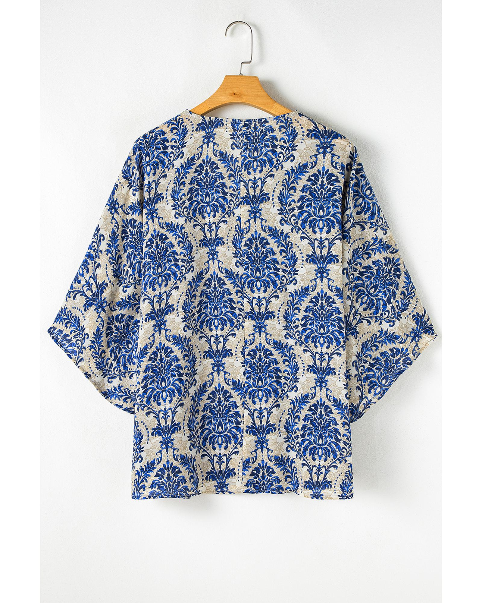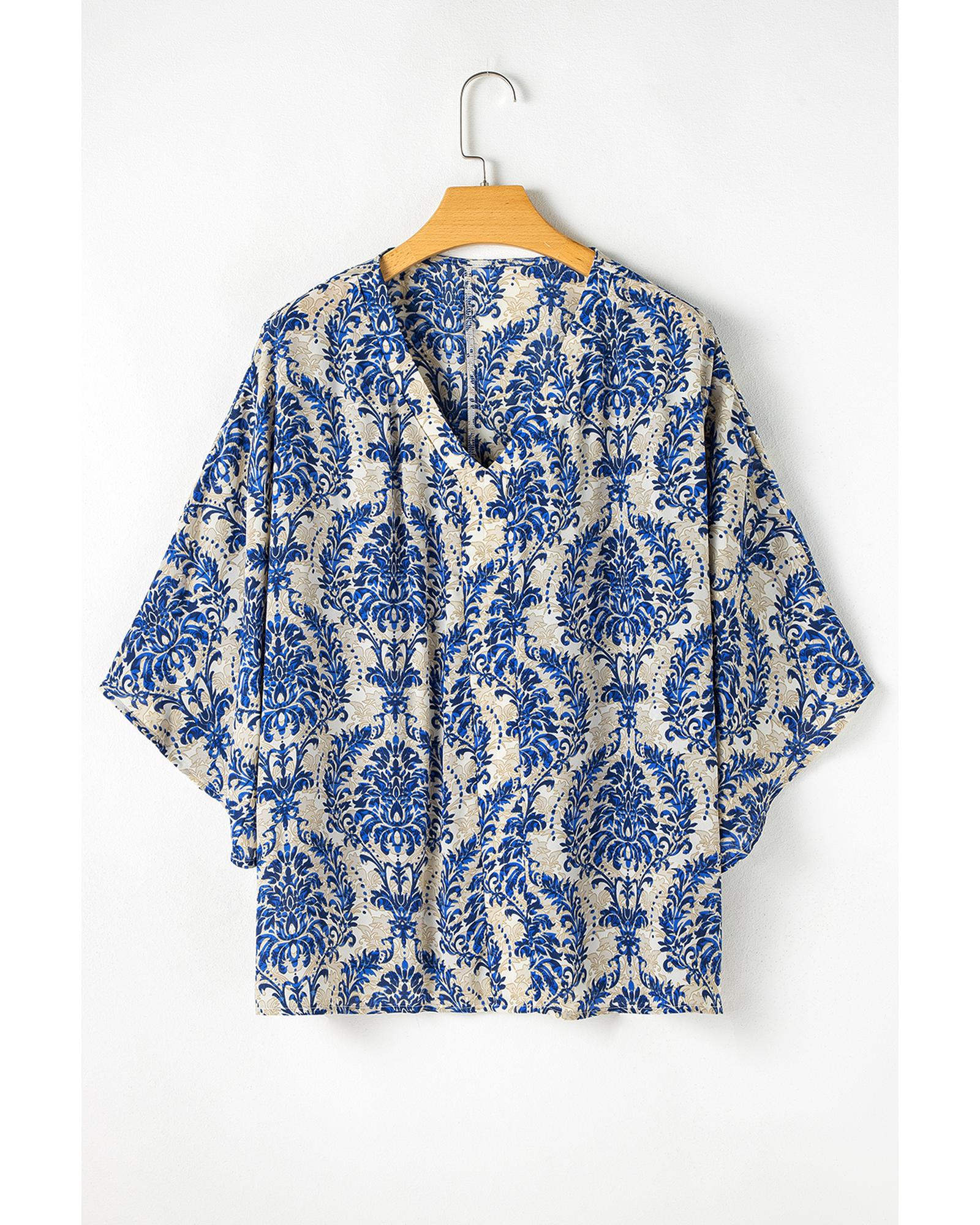 Blue Plus Size Ethnic Printed 3/4 Sleeve V Neck Loose Blouse – 2X