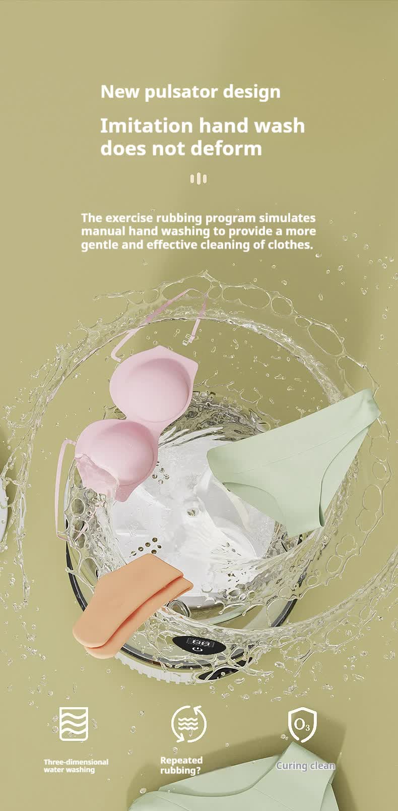- Gentle & Effective Cleaning: Features an innovative pulsator design that simulates hand washing, effectively cleaning small garments without causing damage. Perfect for underwear, socks, baby clothes, and other delicates.
