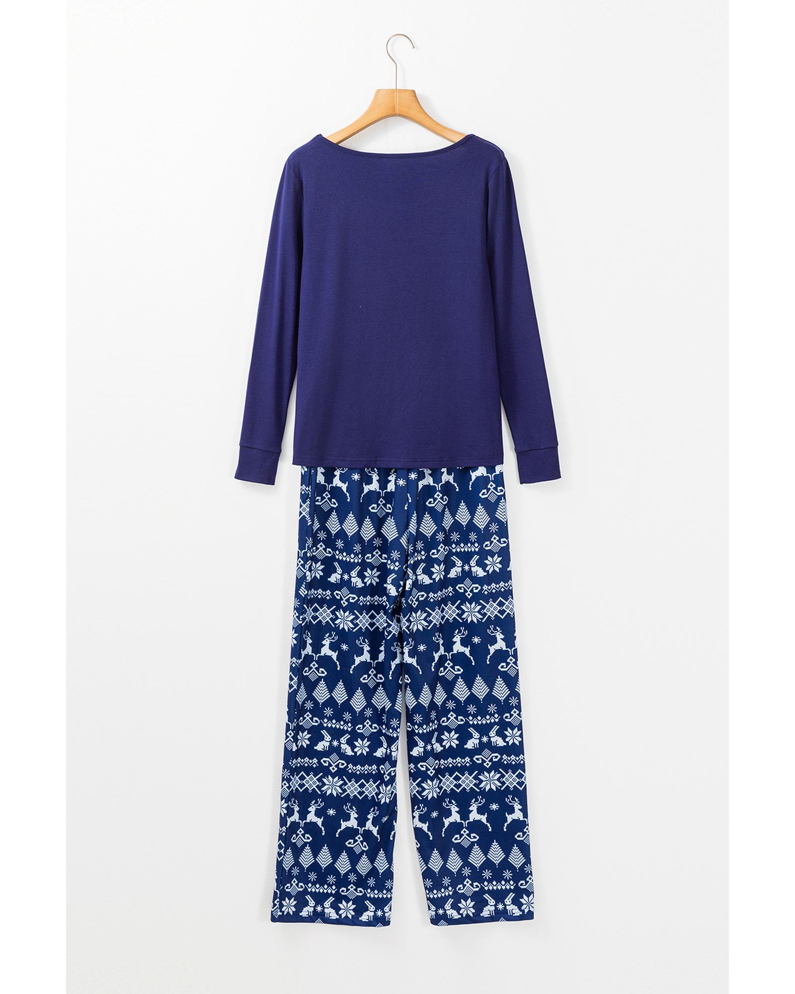 Blue Solid Top and Christmas Pants Two Piece Lounge Set – M