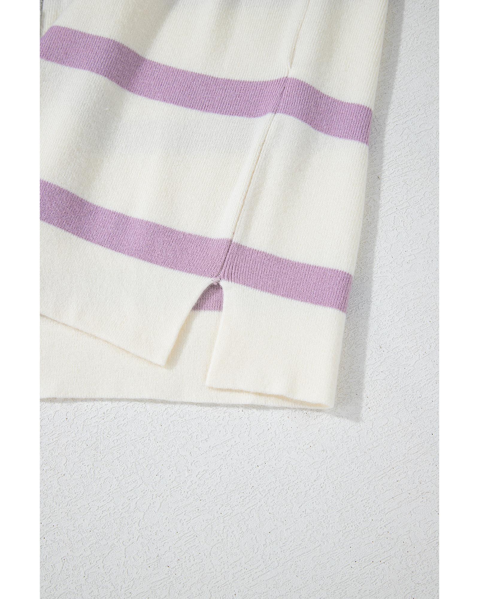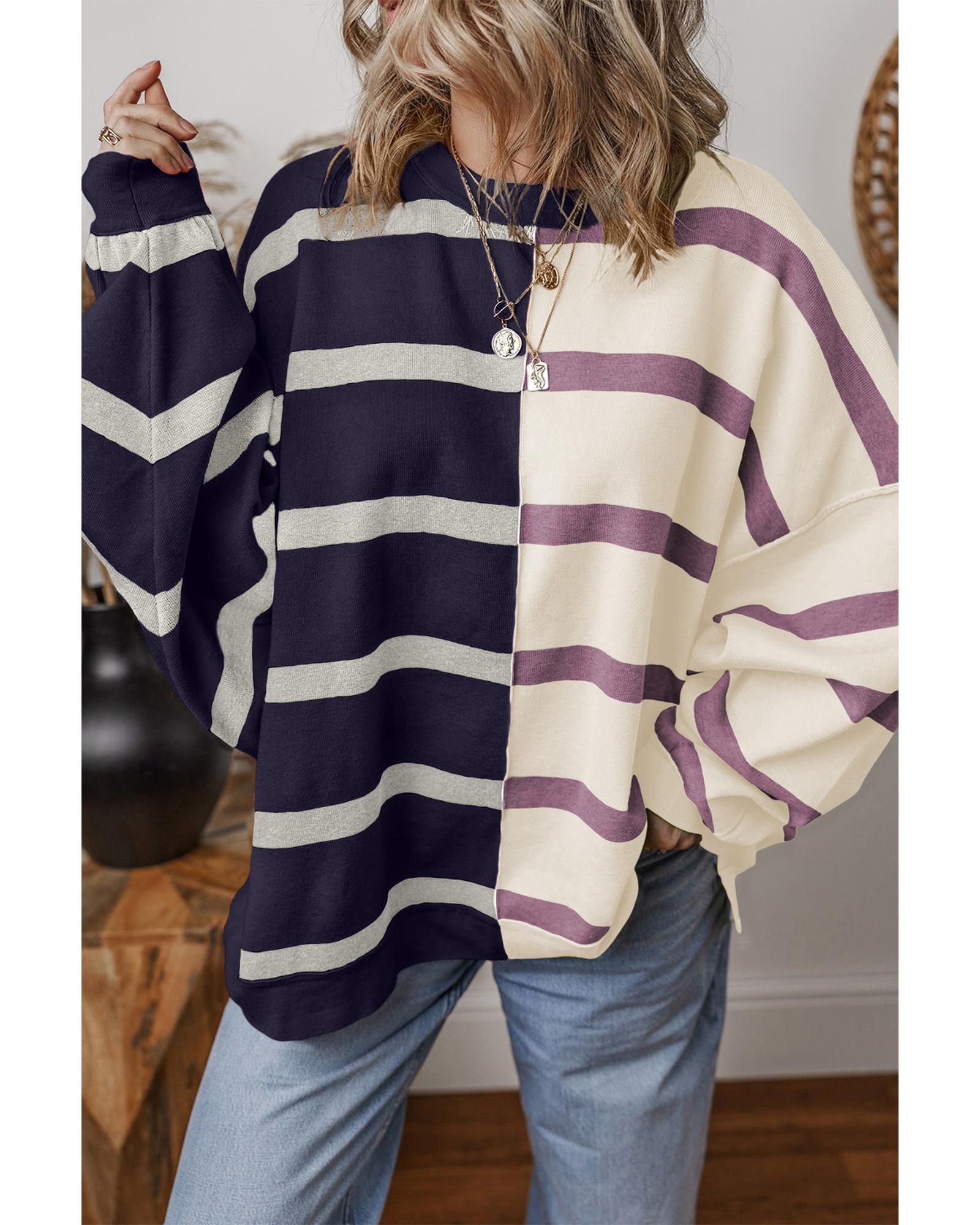 - Trendy Blue Stripe Colorblock Oversized Sweater