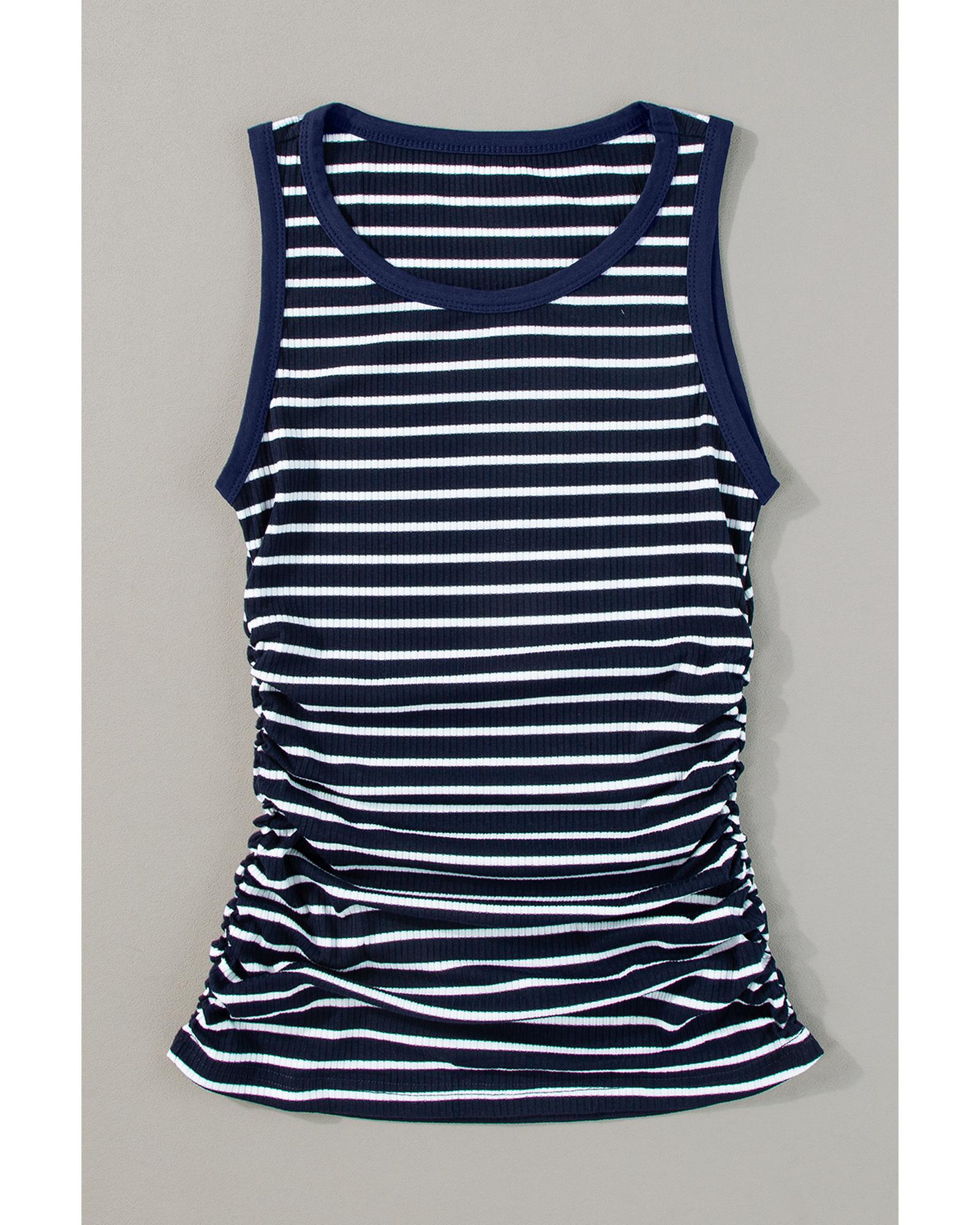 Blue Stripe Contrast Round Neck Sleeveless Slim Top – L