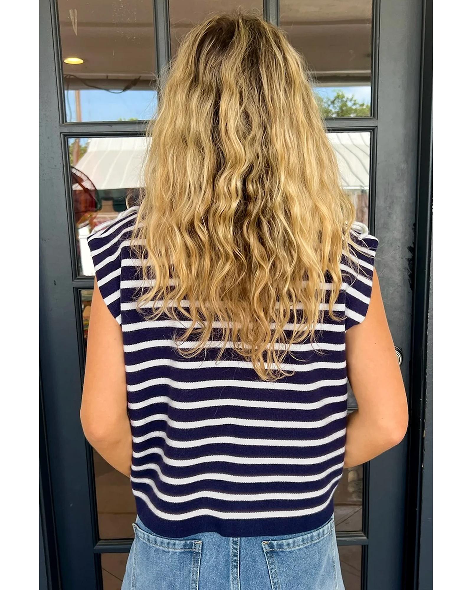 Blue Stripe Knitted Bow Decor Sweater Vest - S