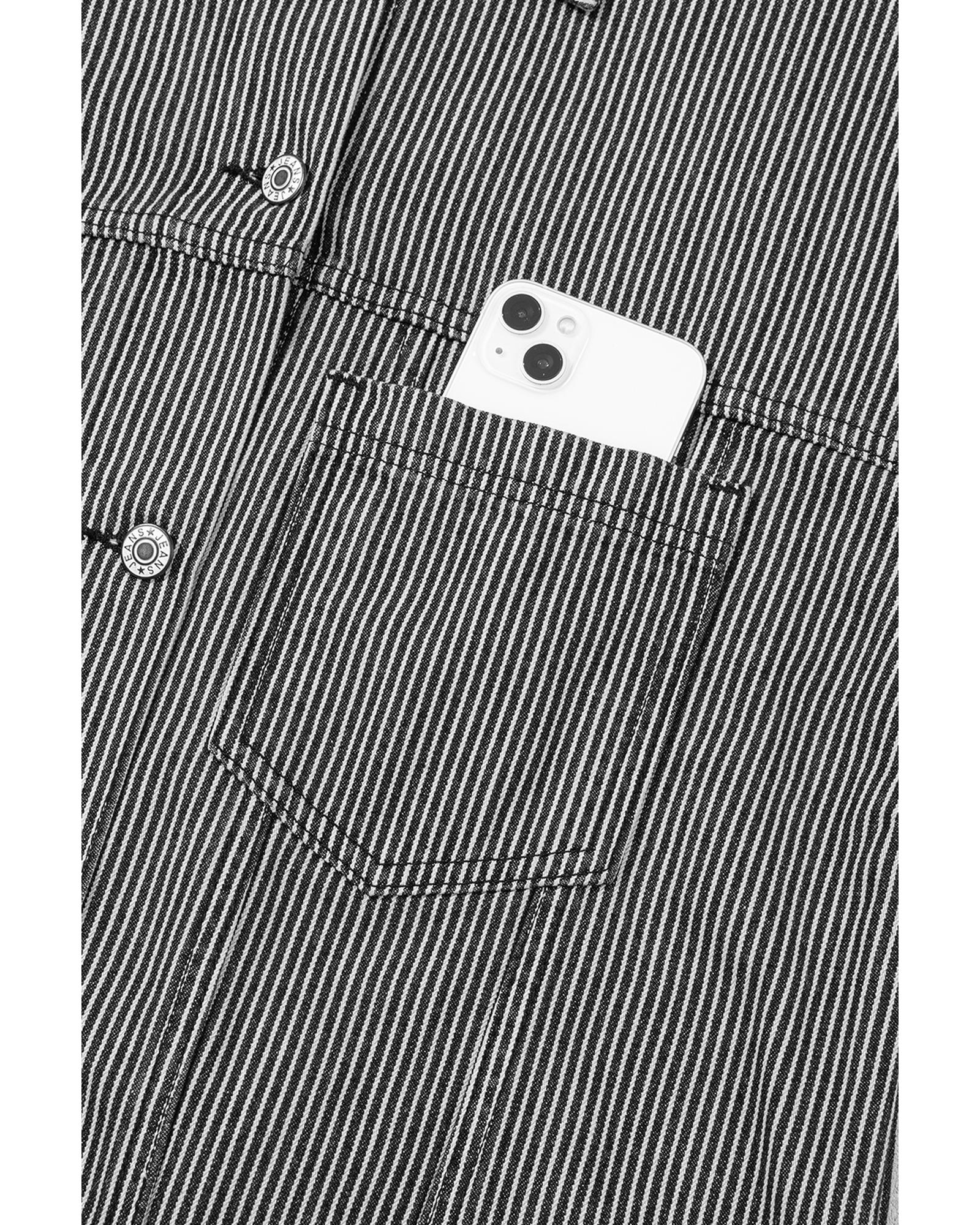 • Blue Stripe Washed Oversize Pocketed Denim Jacket