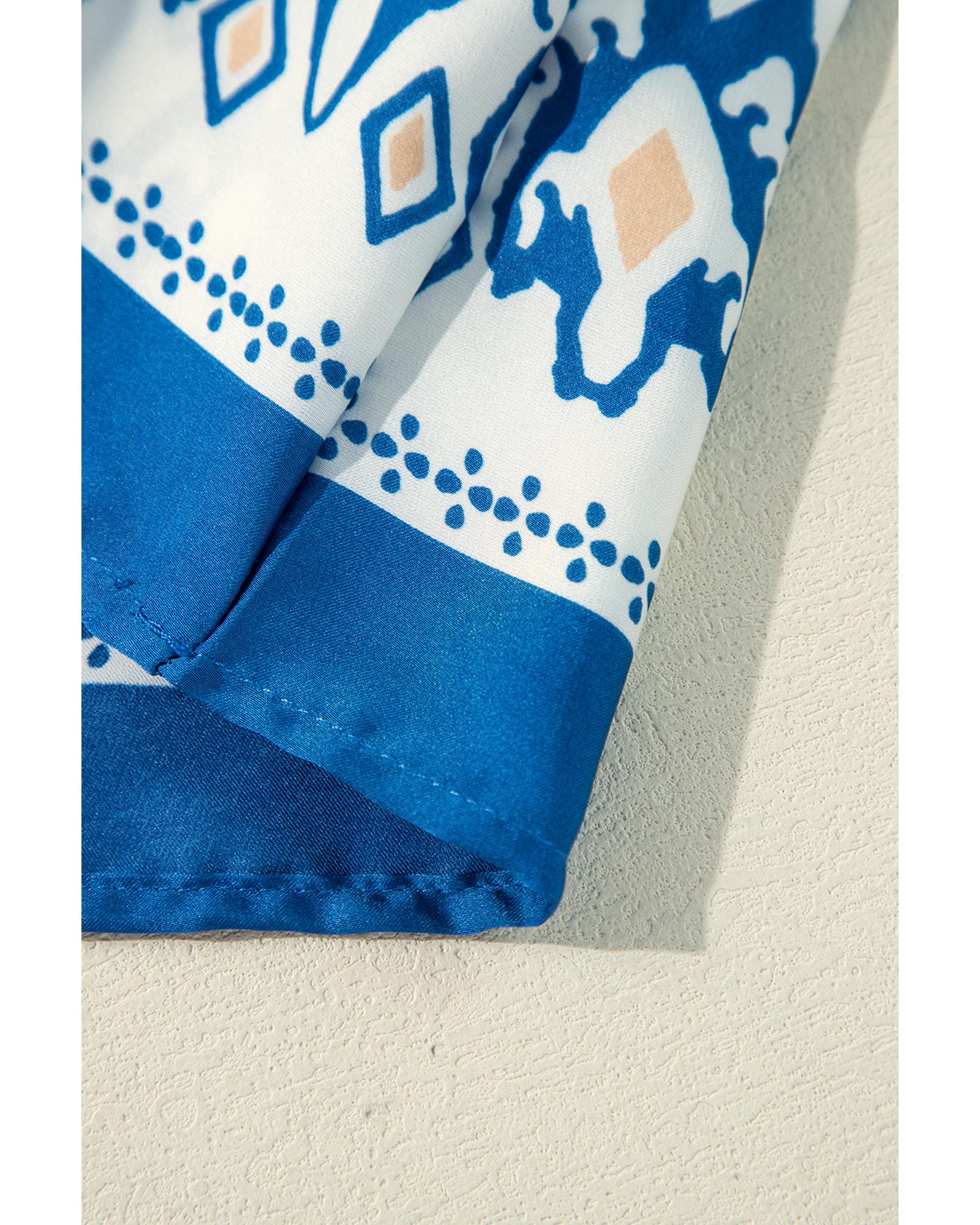 Blue Boho Printed 3/4 Sleeve Tied Neck Blouse - XL
