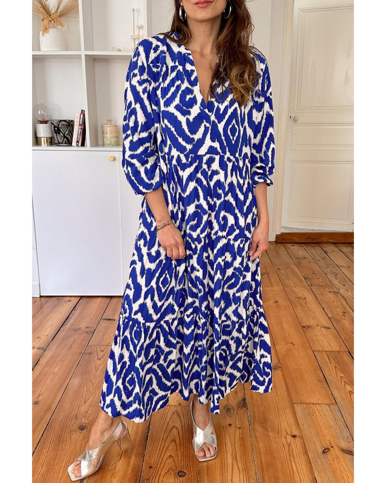 Blue Western Abstract Geometric Printed Maxi Dress – L