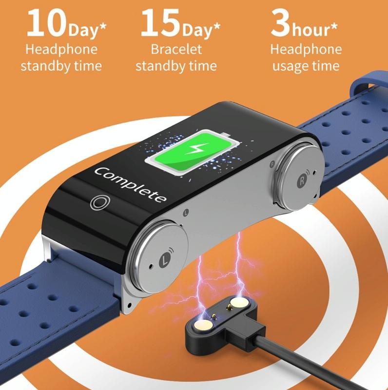 • Standby Time: Headphones – 7-15 Days, Bracelet – 10 Days