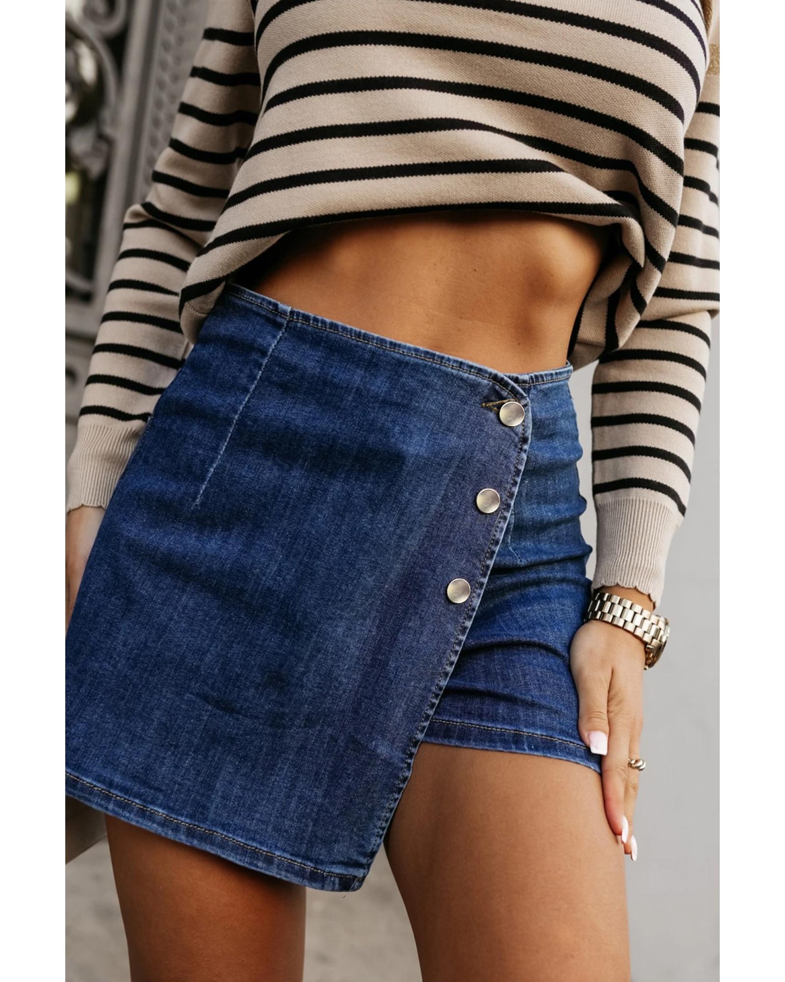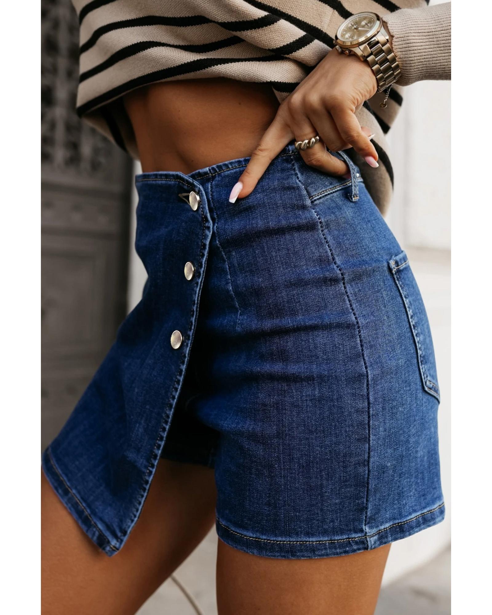 Bluing Asymmetric Wrapped Buttoned High Waist Denim Shorts – 10 US