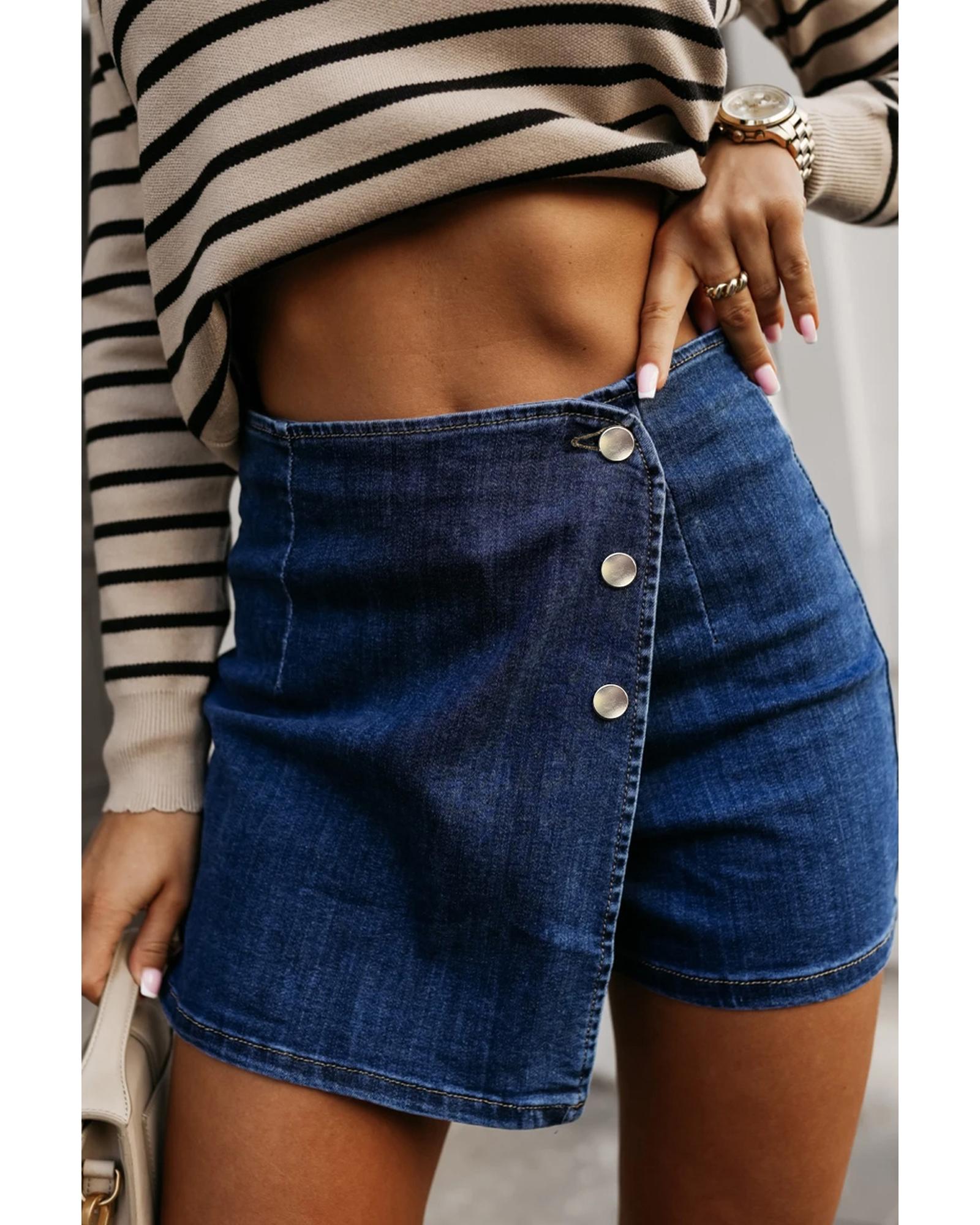 Bluing Asymmetric Wrapped Buttoned High Waist Denim Shorts – 8 US