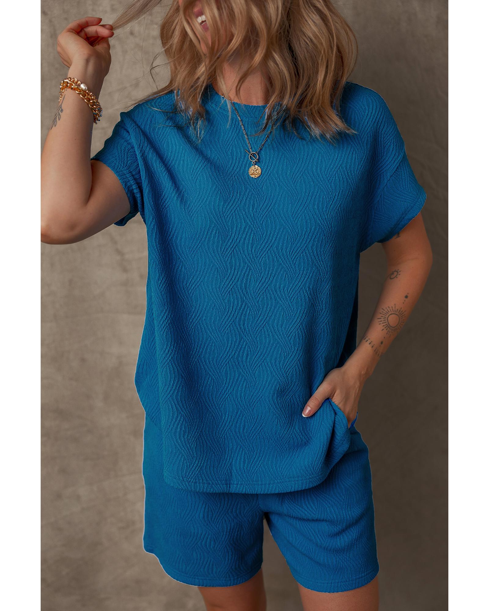 Bluing Solid Textured Crew Neck Short Set – L