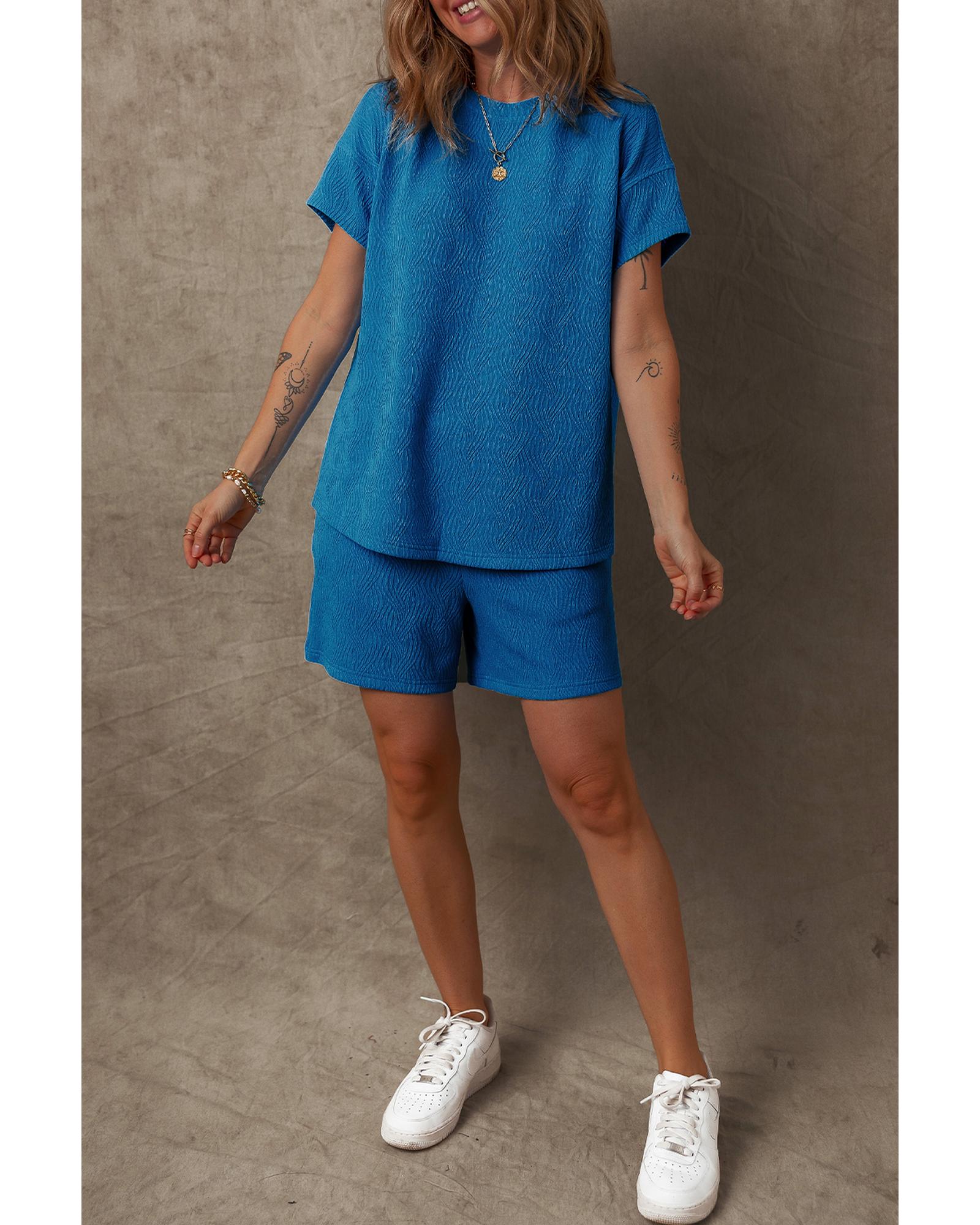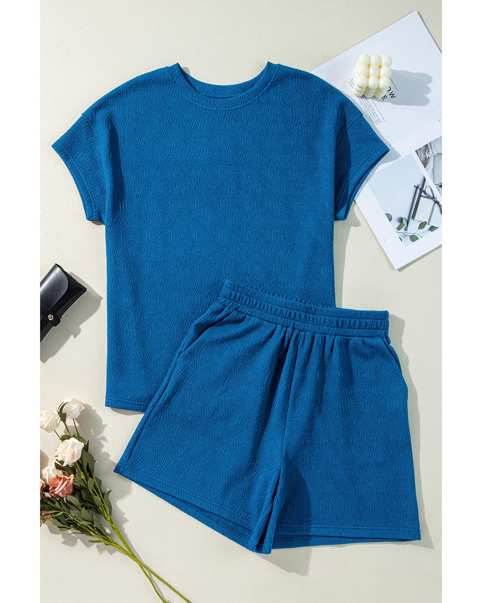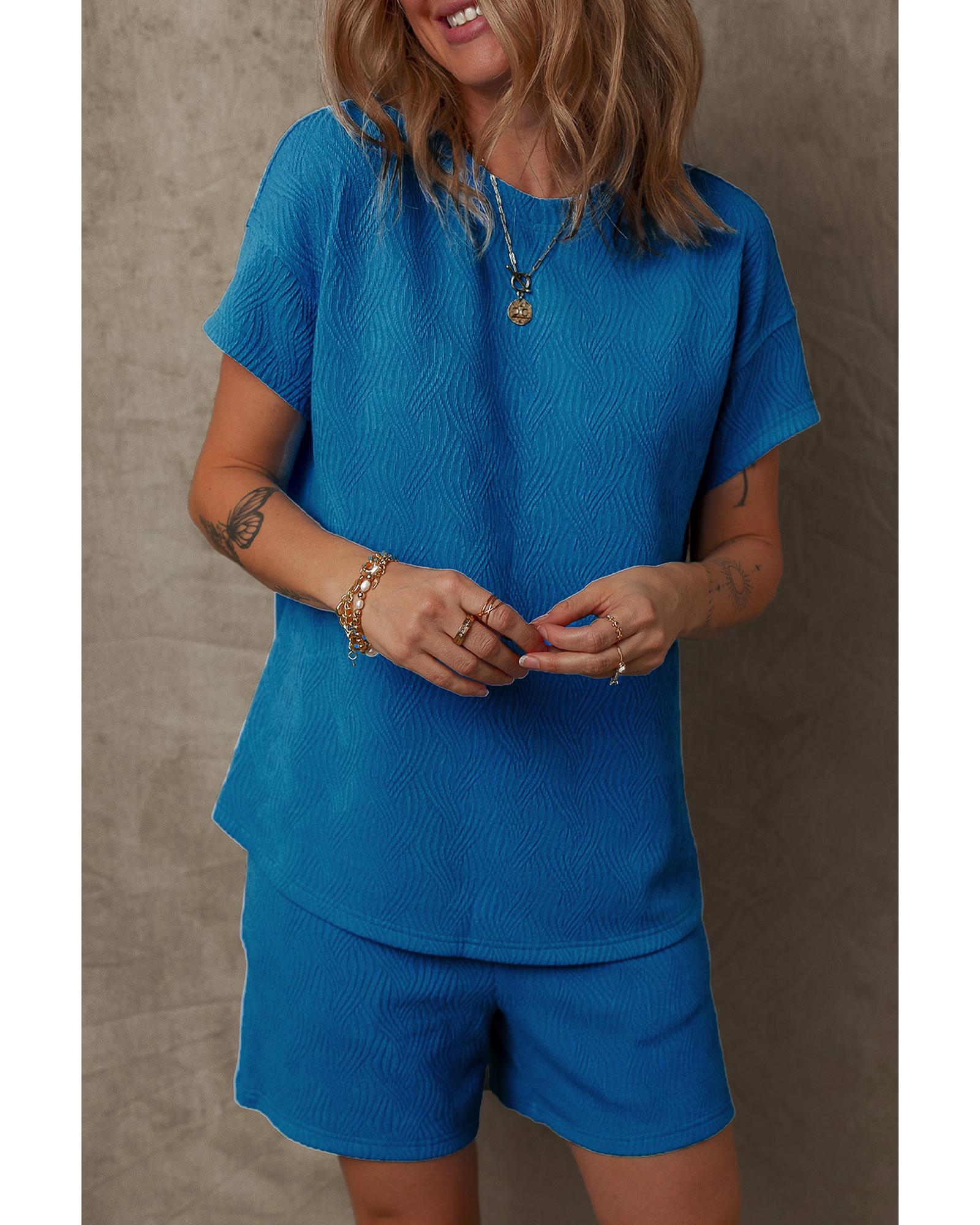 Bluing Solid Textured Crew Neck Short Set – S