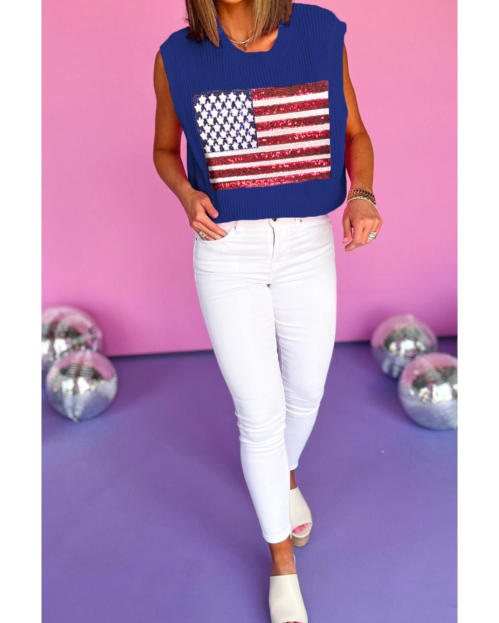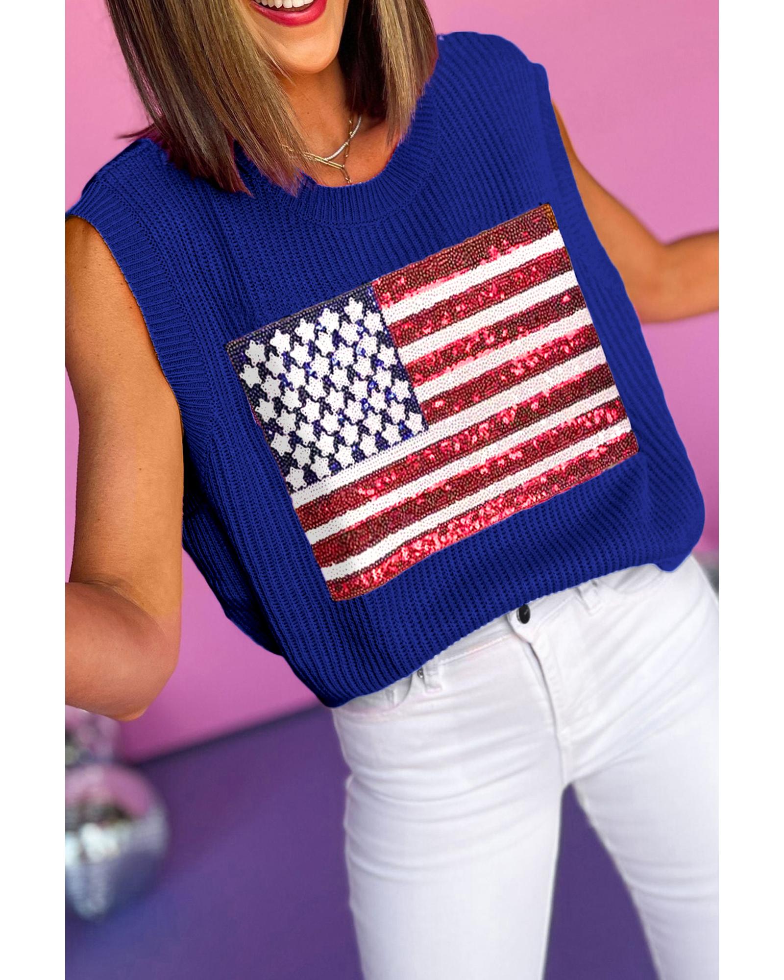 Bonbon Sparkling American Flag Knitted Vest - 2XL