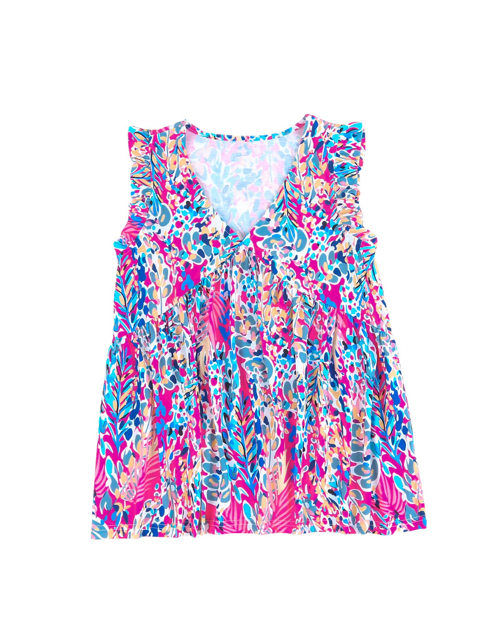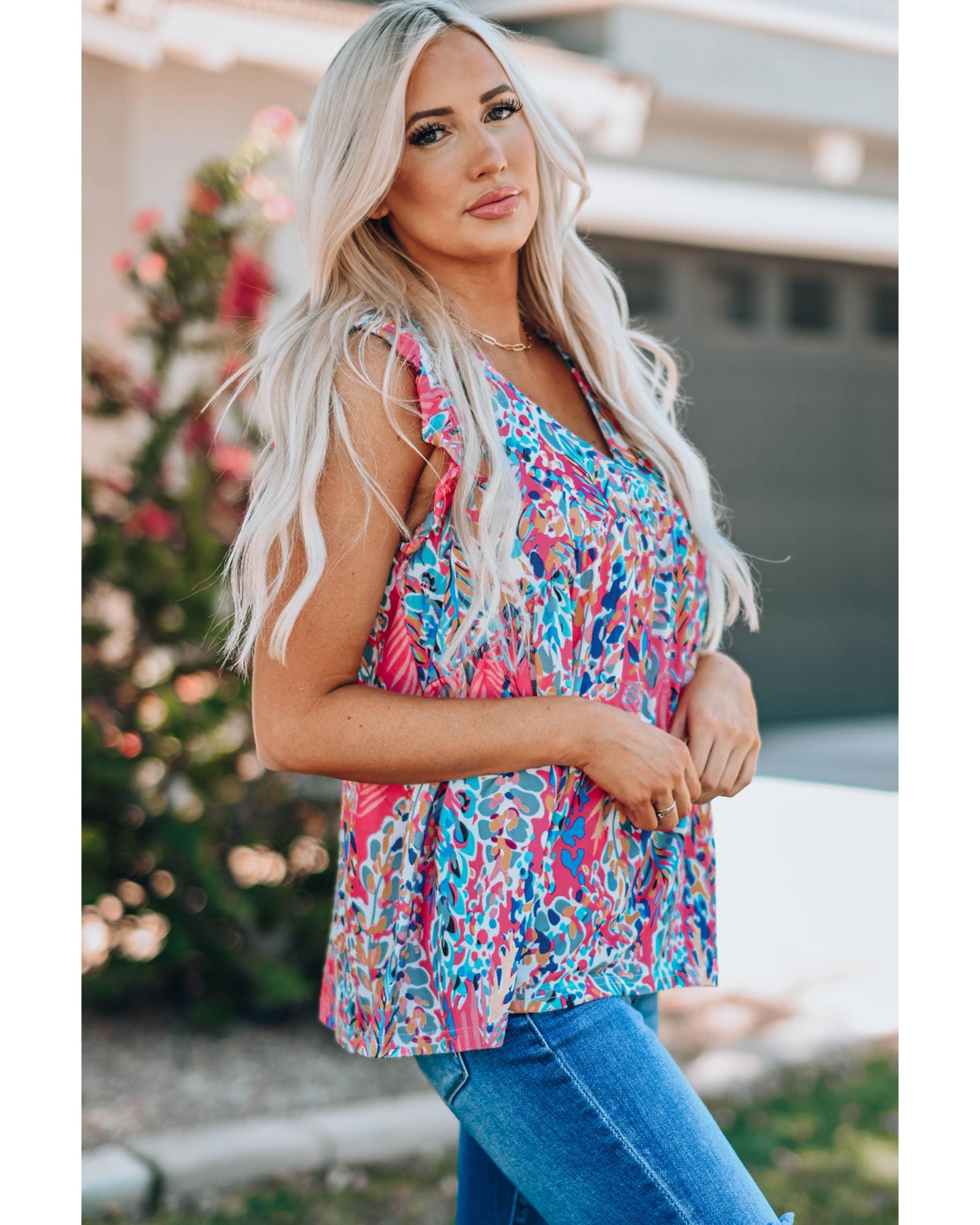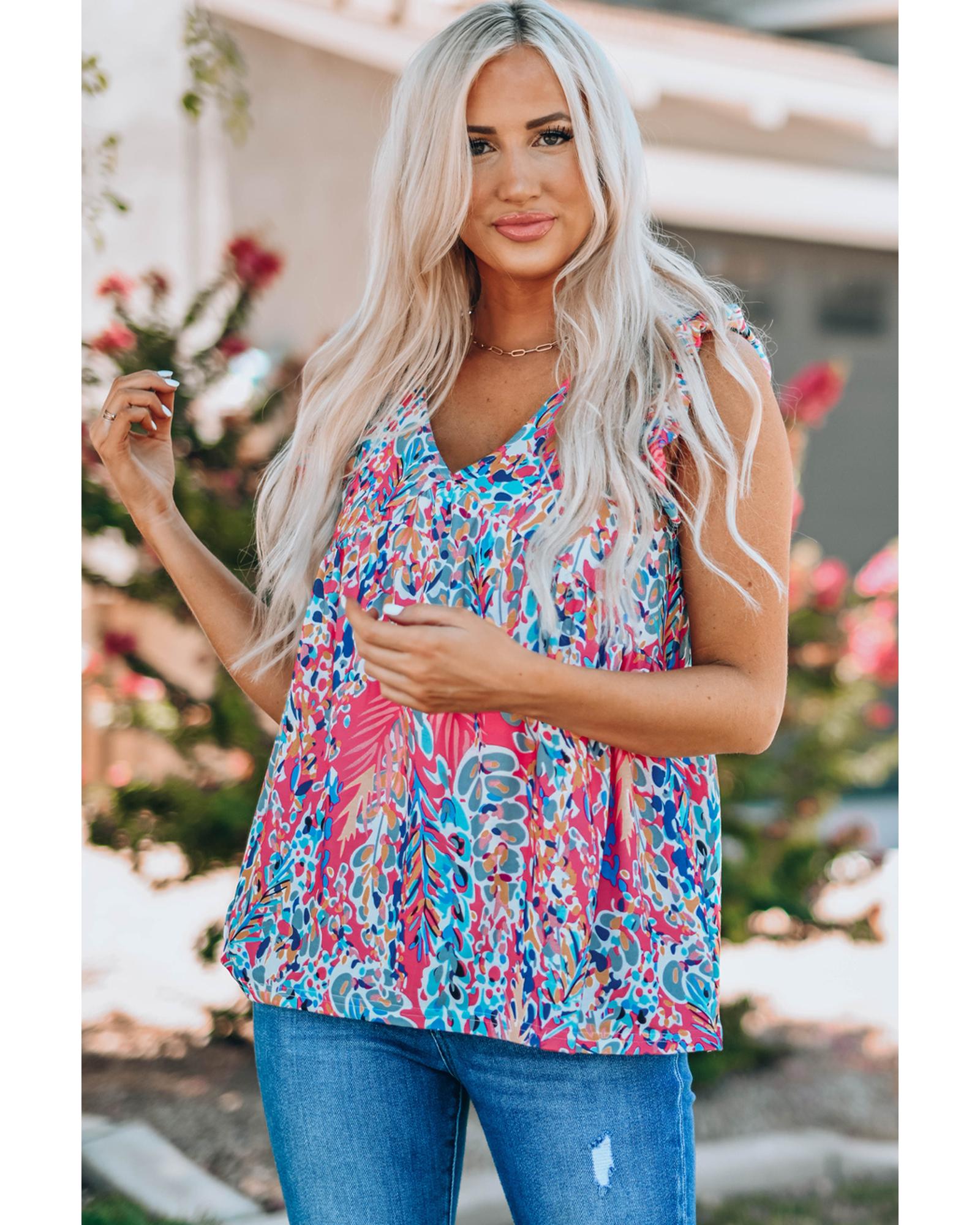 Boho Pattern Print Flounce V Neck Tank Top – L