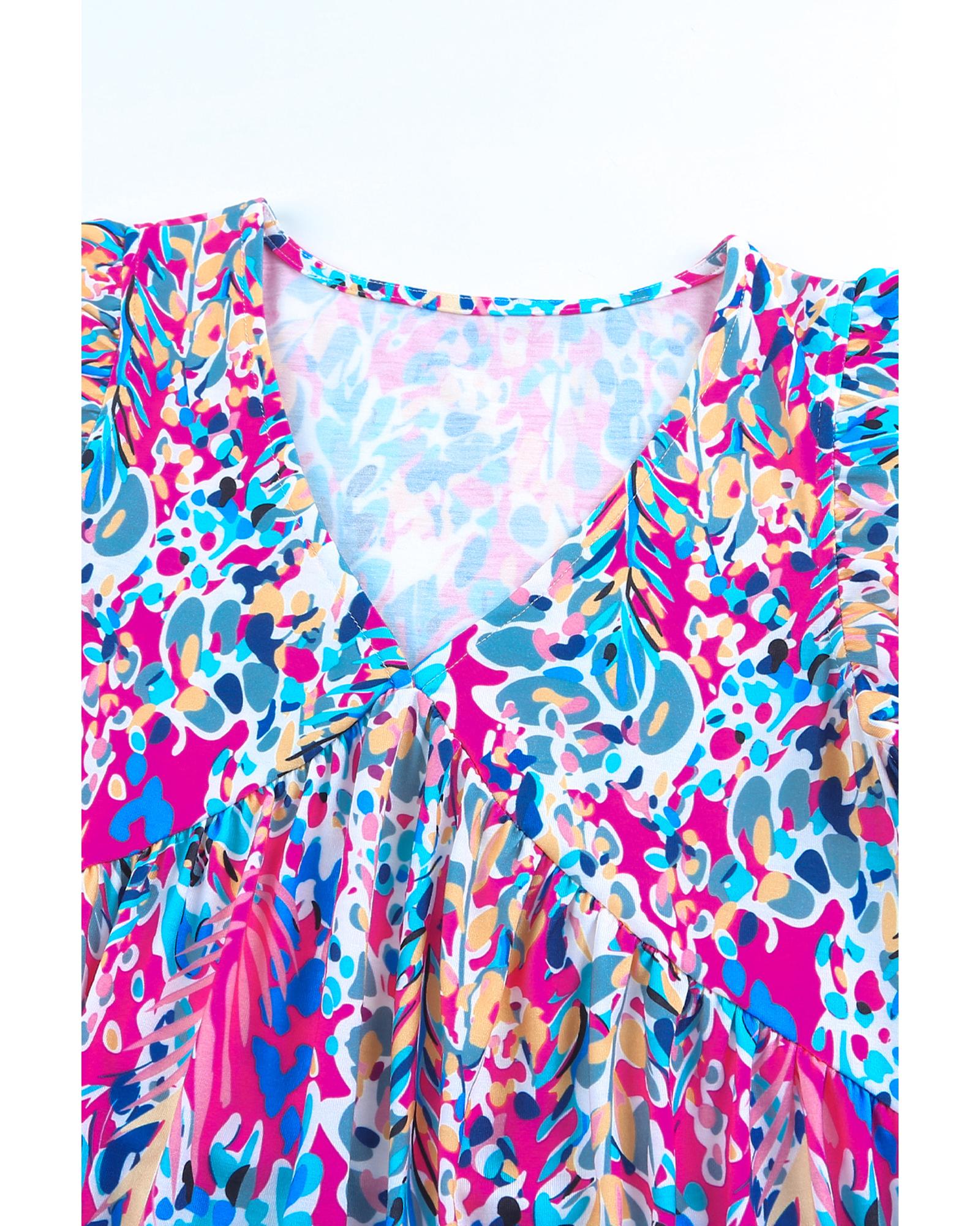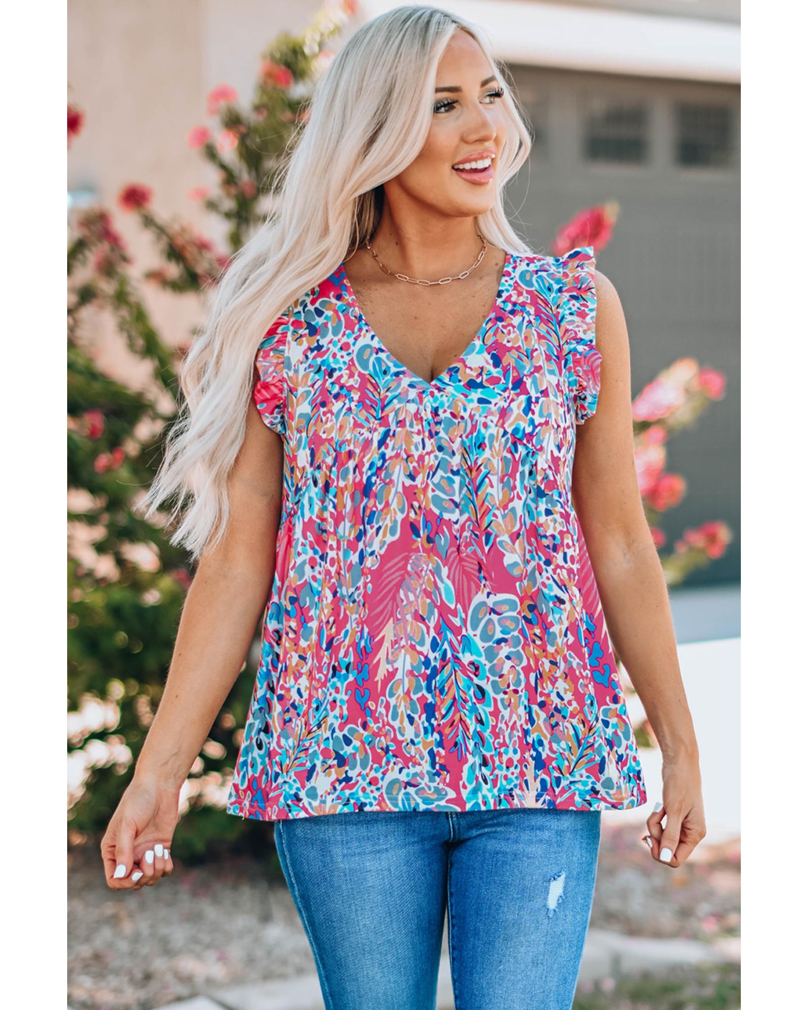 Boho Pattern Print Flounce V Neck Tank Top – M
