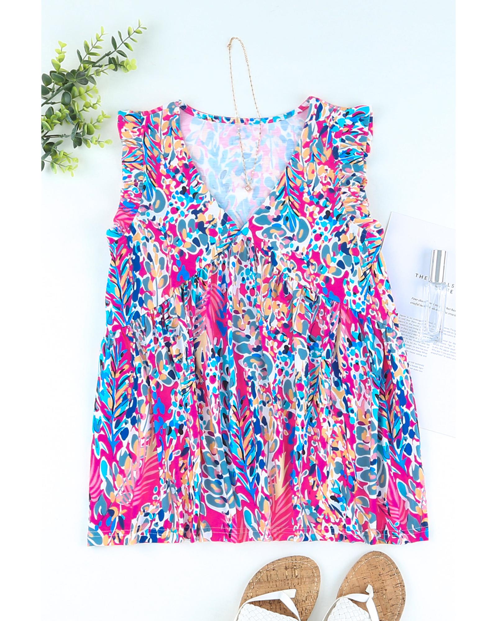 Boho Pattern Print Flounce V Neck Tank Top – S