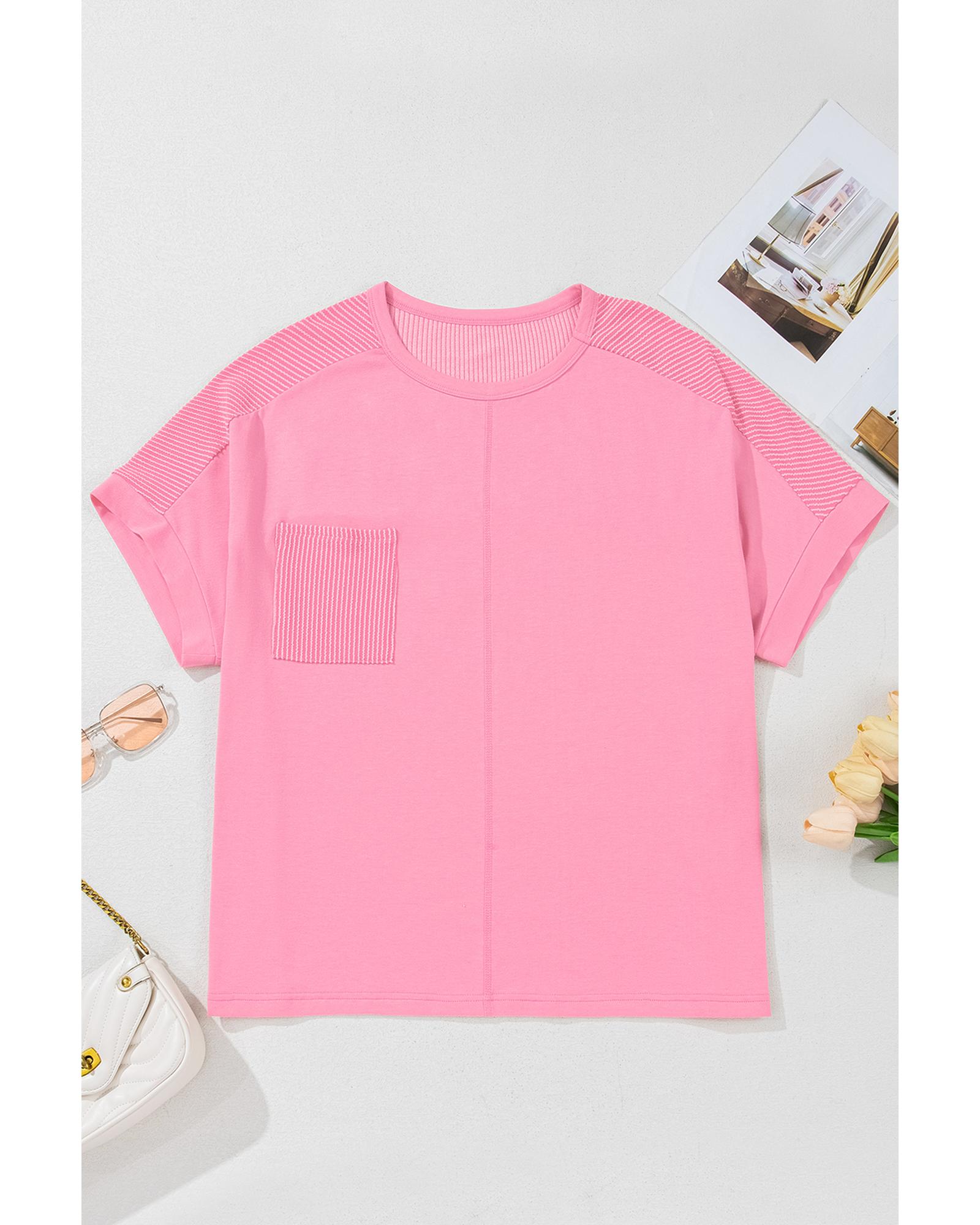 Bonbon Corded Patchwork Pocketed Plus Size T Shirt – 3X