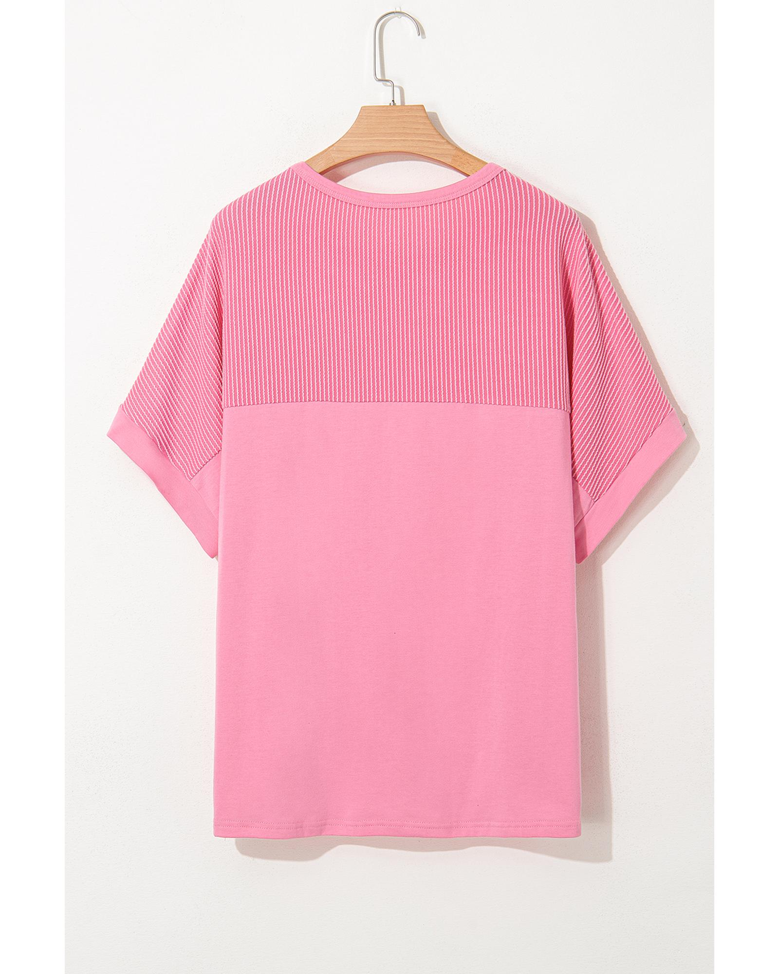 Bonbon Corded Patchwork Pocketed Plus Size T Shirt – 4X
