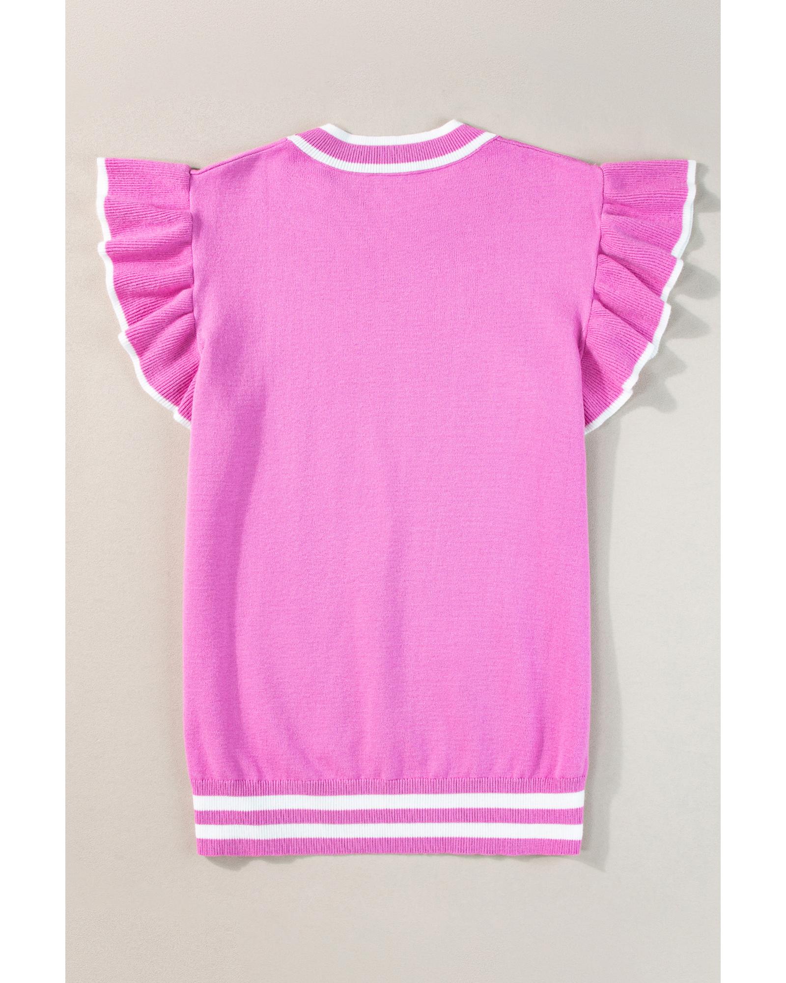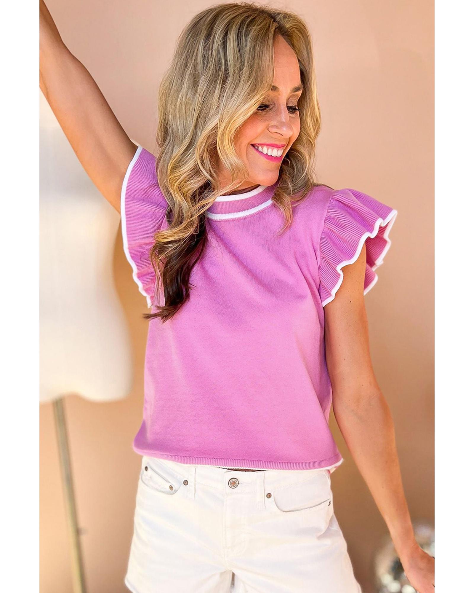 Bonbon Edge Piping Ruffled Sleeve Round Neck Knit Top – L