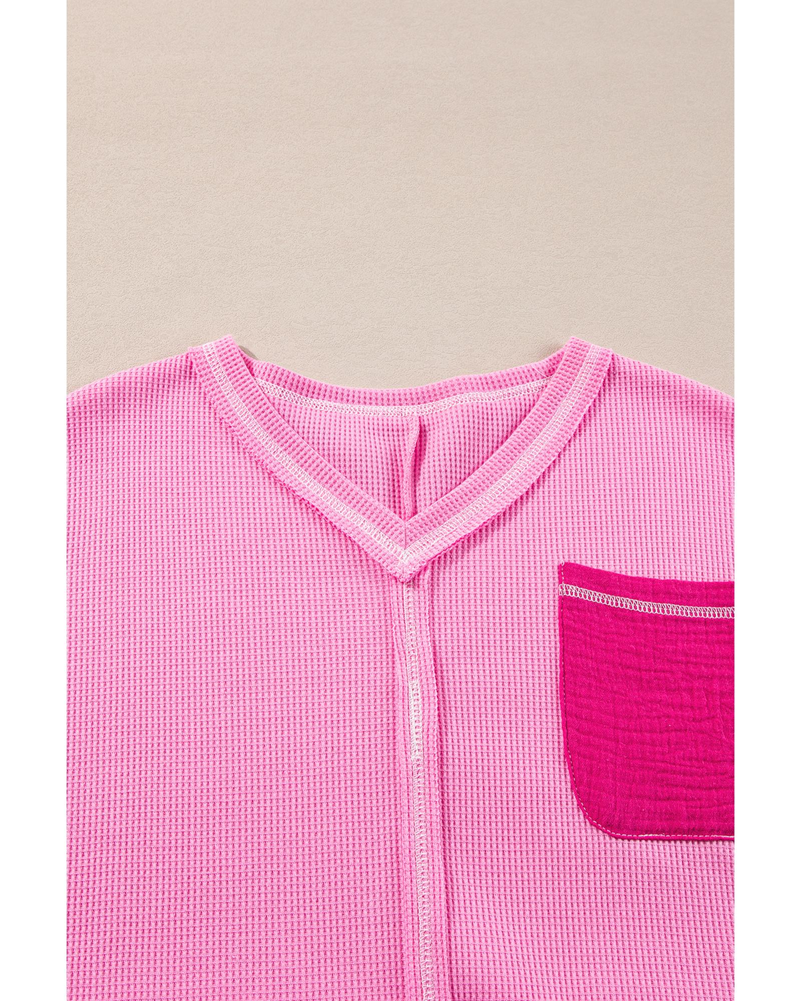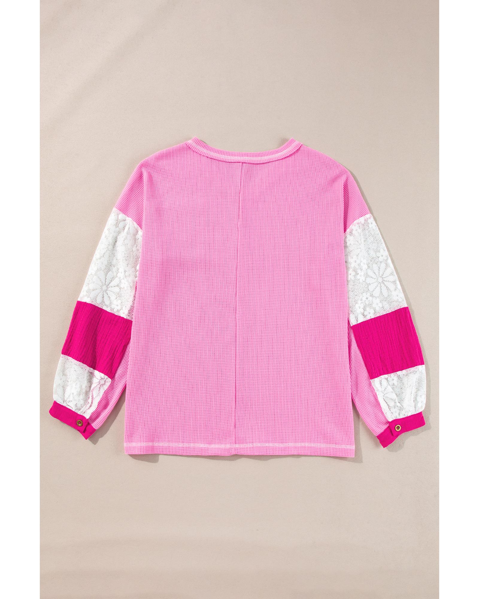 Bonbon Lace Floral Patchwork Sleeve Stitching V Neck Rib Knit Blouse – S