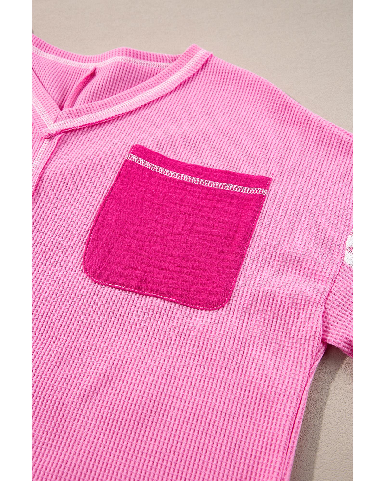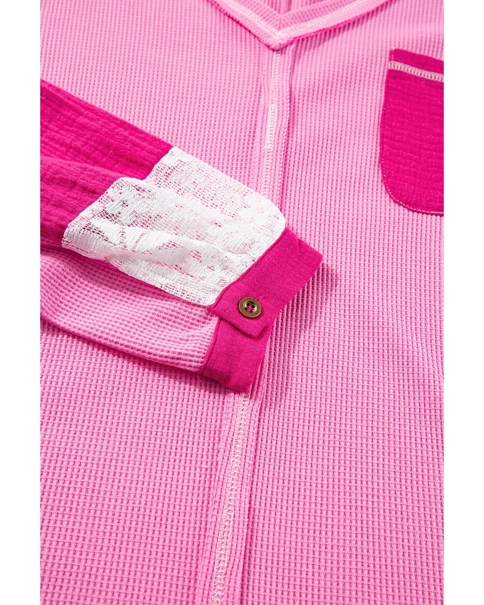 Bonbon Lace Floral Patchwork Sleeve Stitching V Neck Rib Knit Blouse – XL