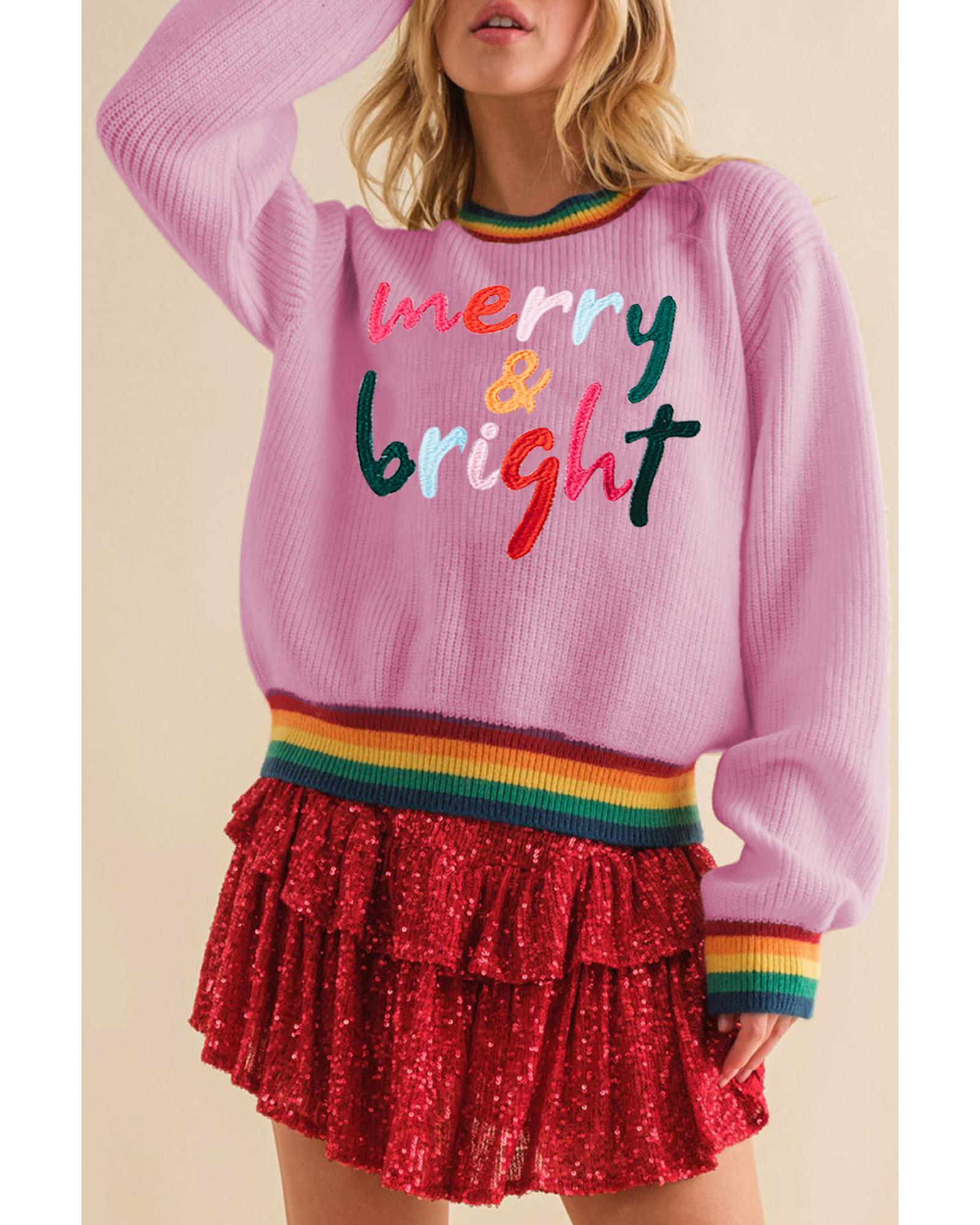 Bonbon Merry & Bright Colorful Stripes Trim Sweater – XL