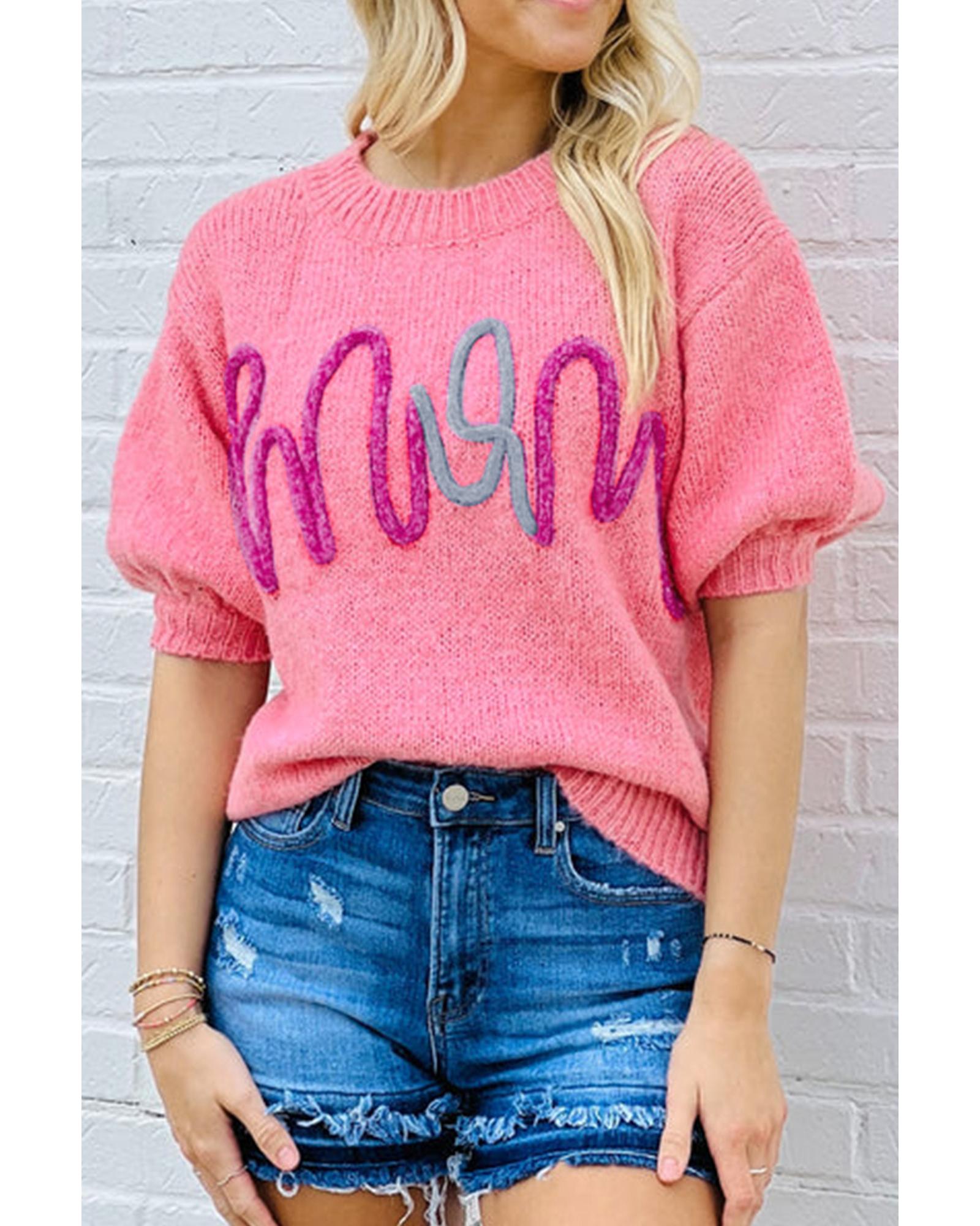 - Chic and stylish Bonbon Mom Tinsel Front Short Sleeve Sweater