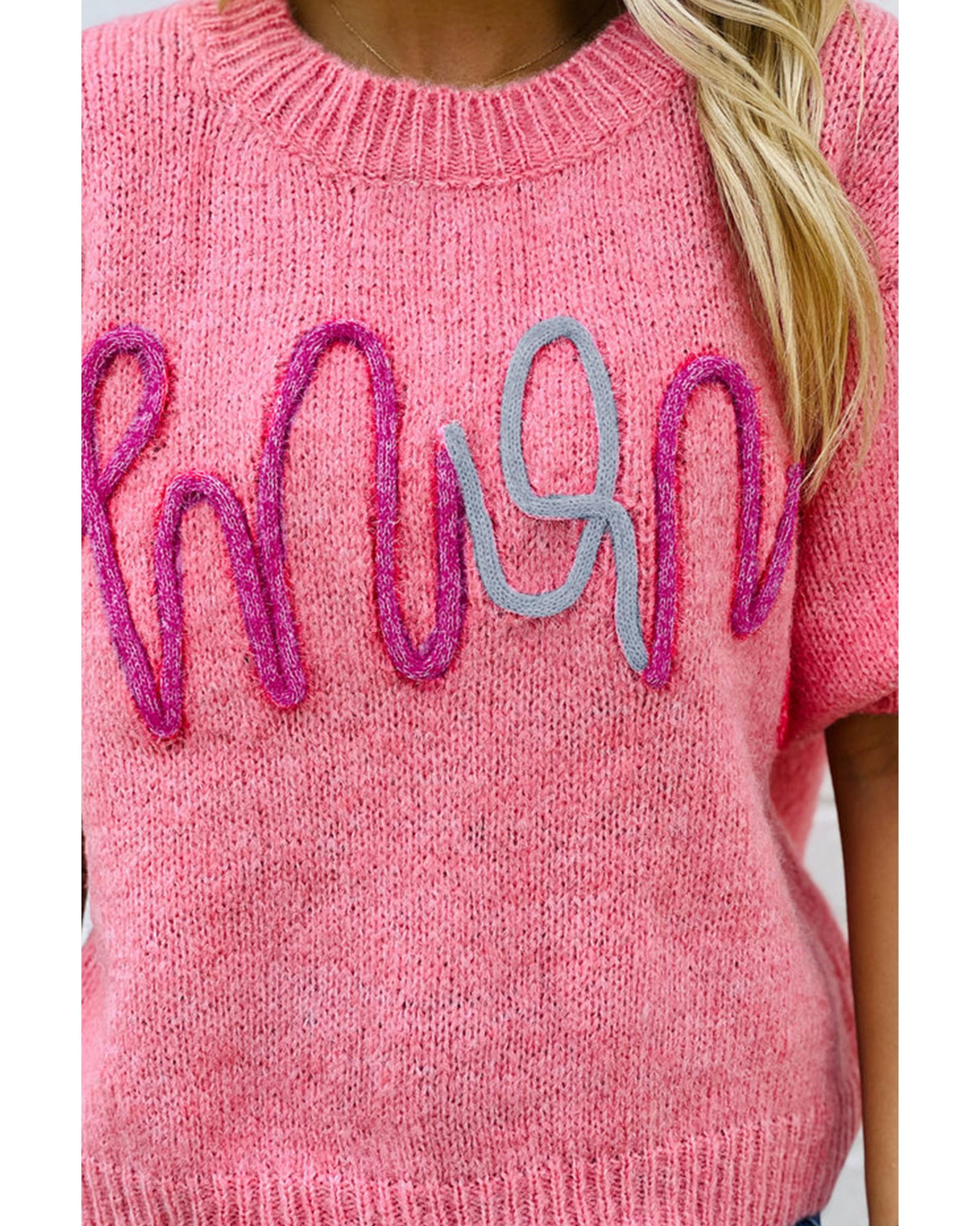 - Chic and stylish Bonbon Mom Tinsel Front Short Sleeve Sweater