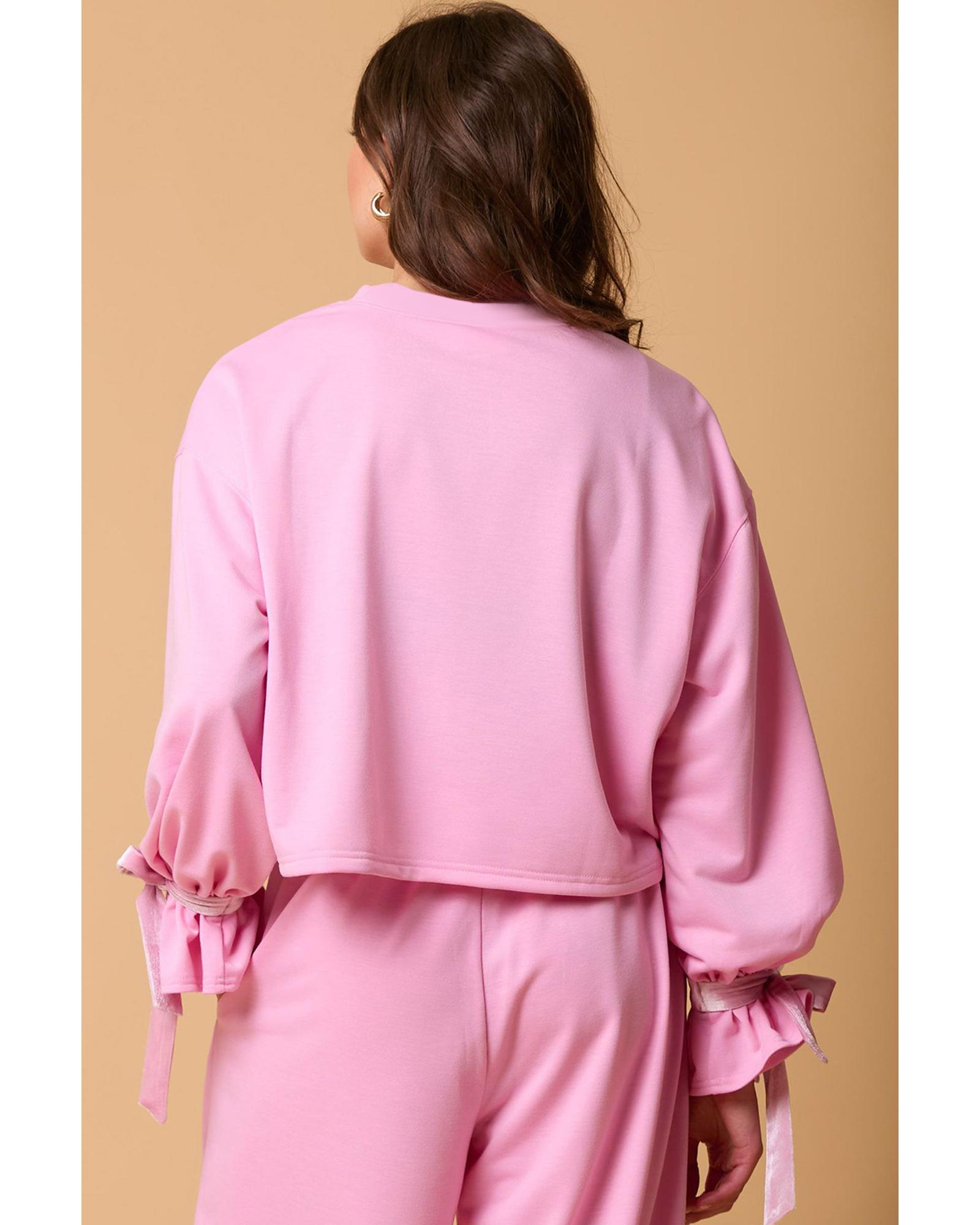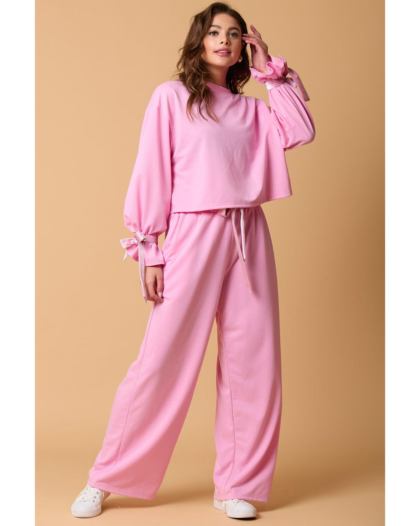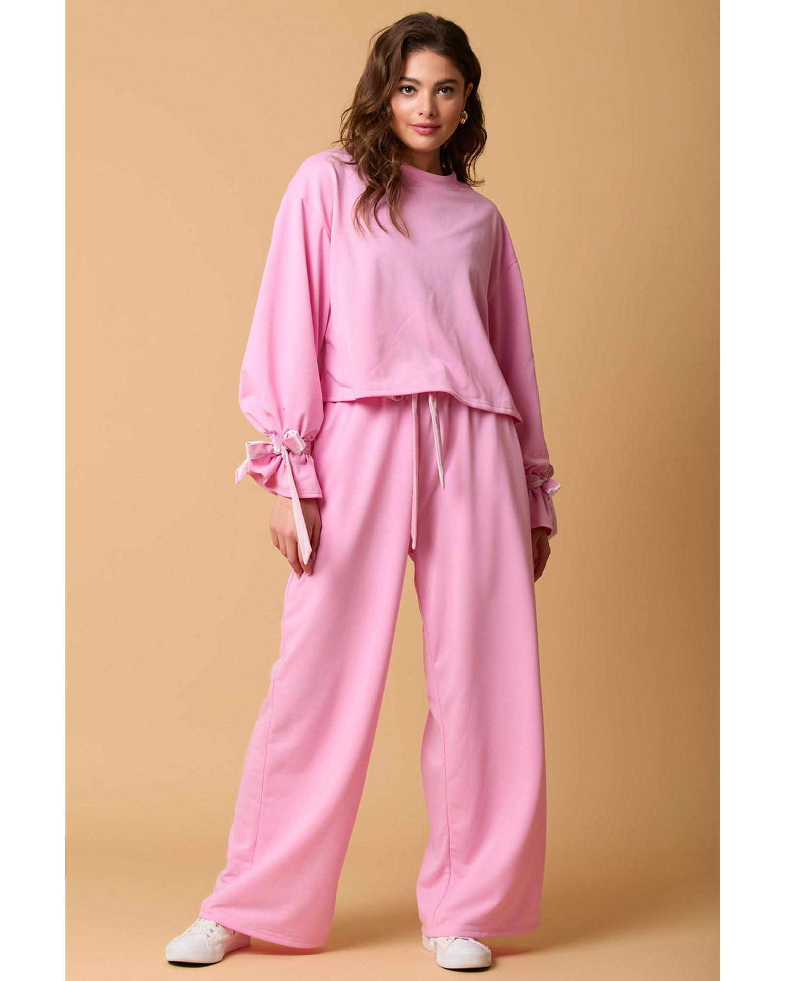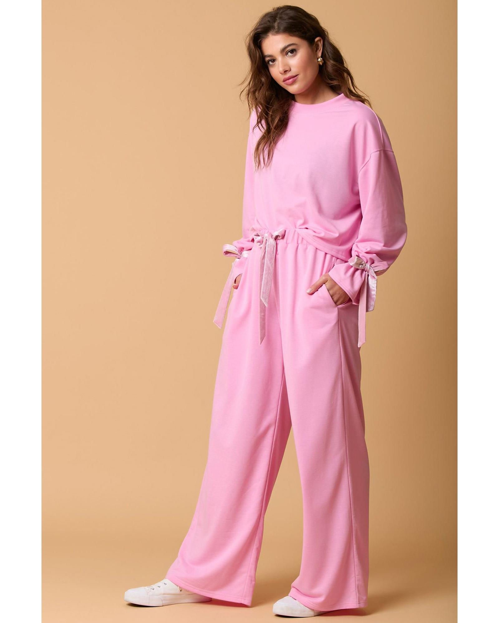 Bonbon Solid Color Drawstring Long Sleeve Top and Pants Set – L