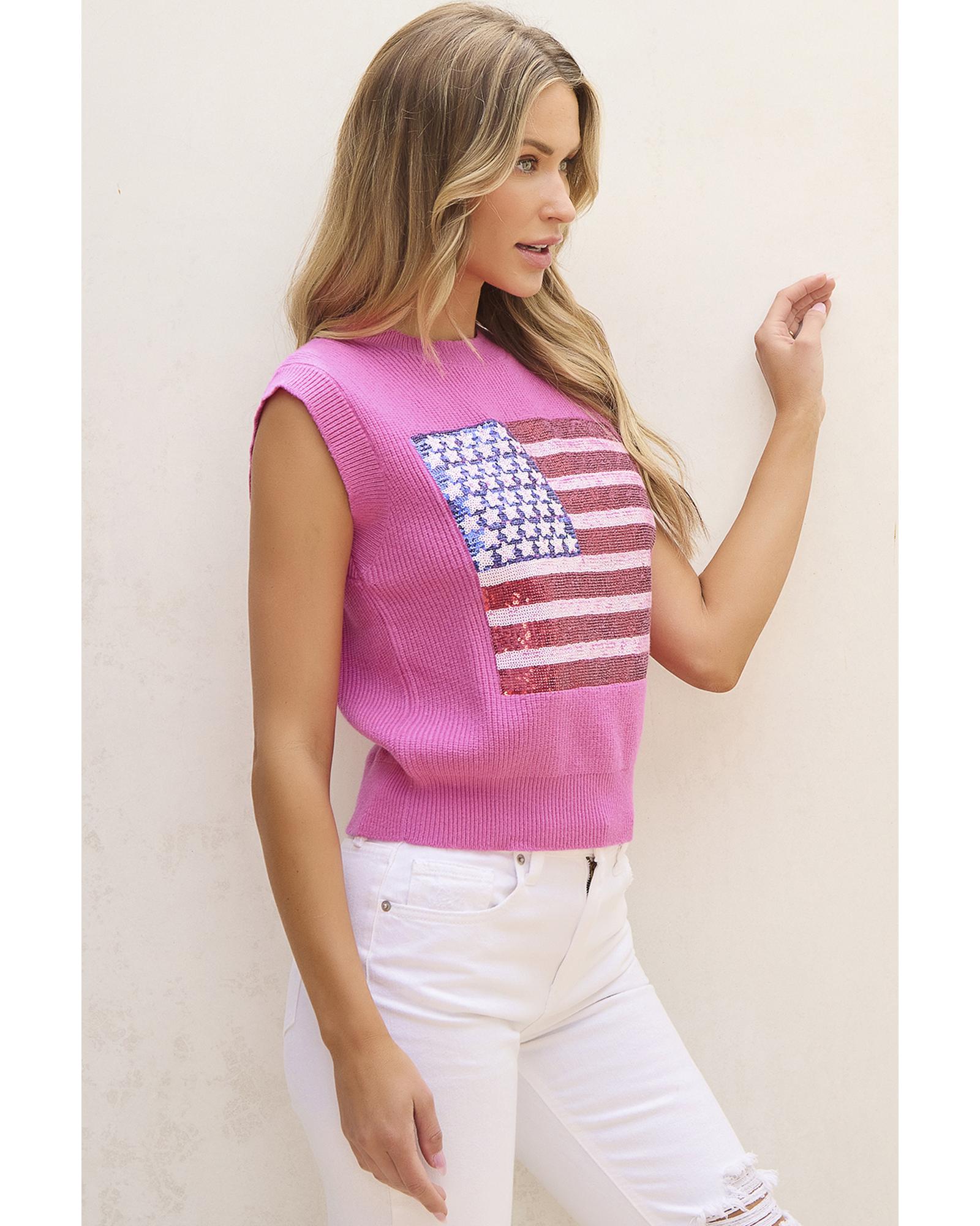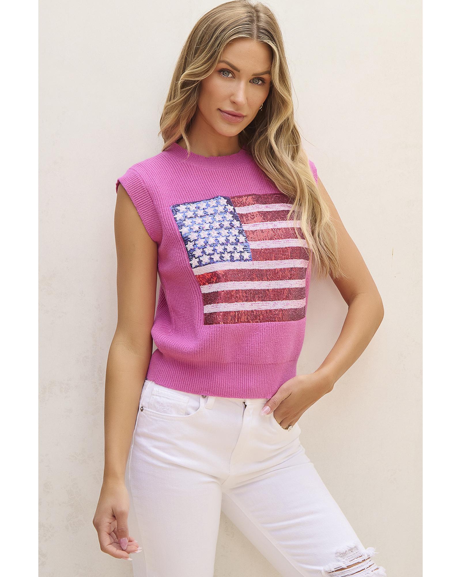 Bonbon Sparkling American Flag Knitted Vest – M