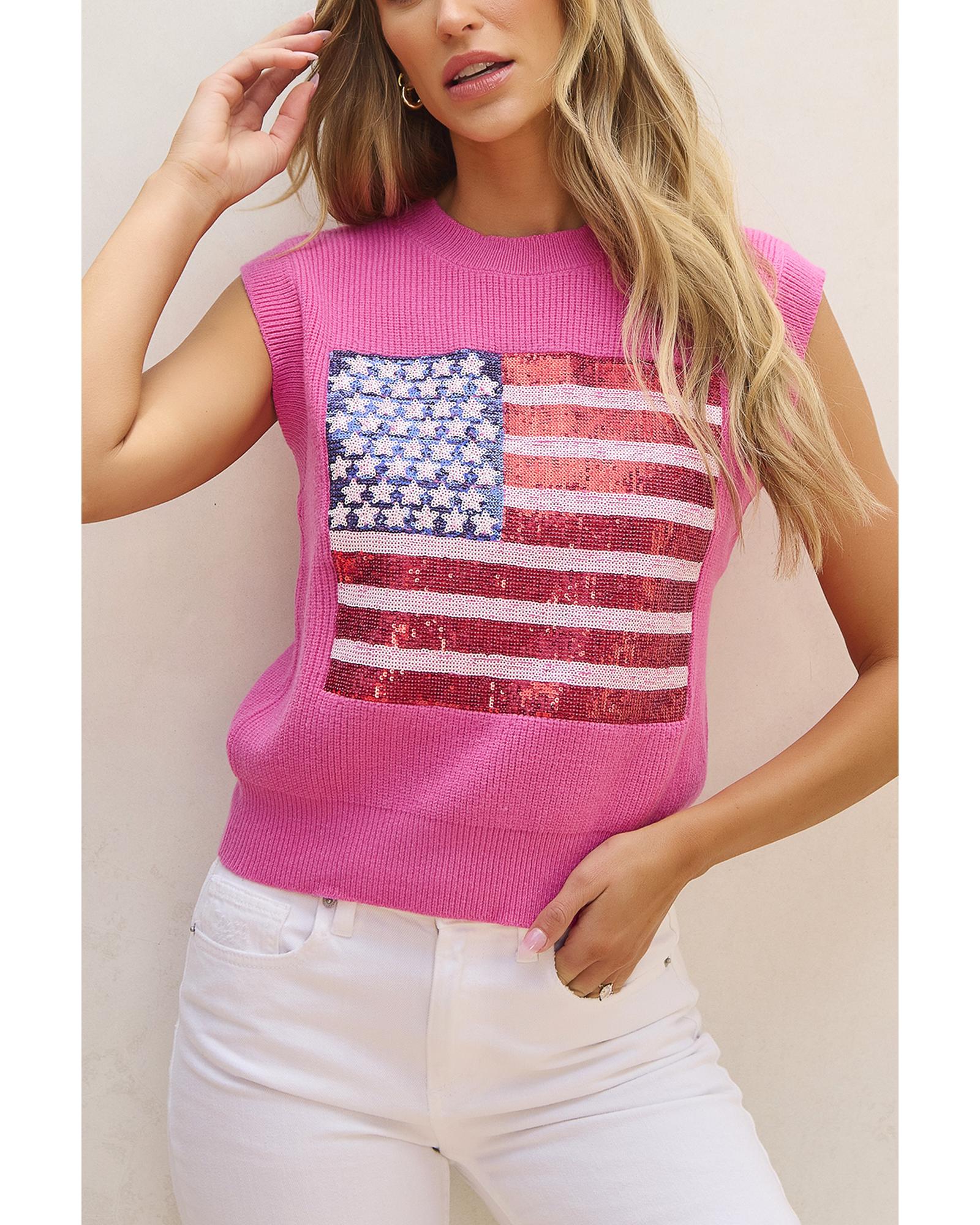 Bonbon Sparkling American Flag Knitted Vest – XL