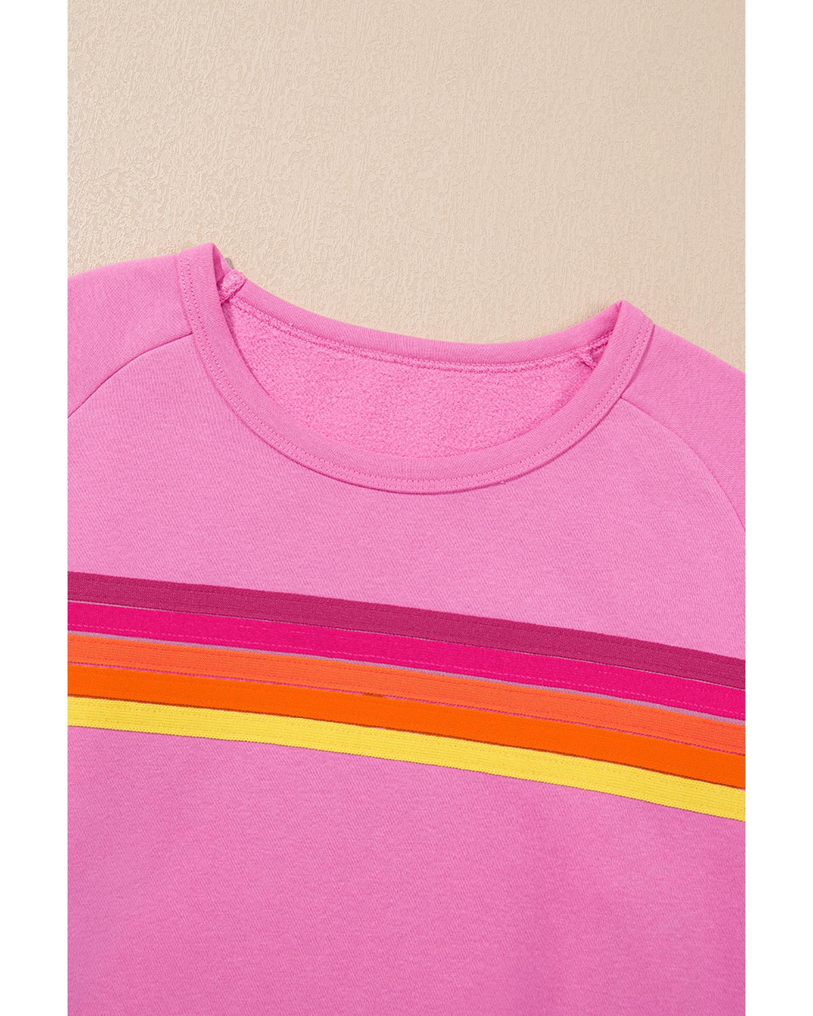 Bonbon Striped Accent Pullover and Shorts Two Piece Casual Set – L