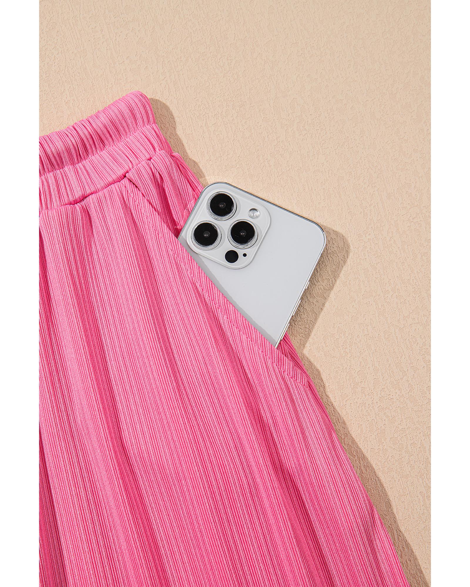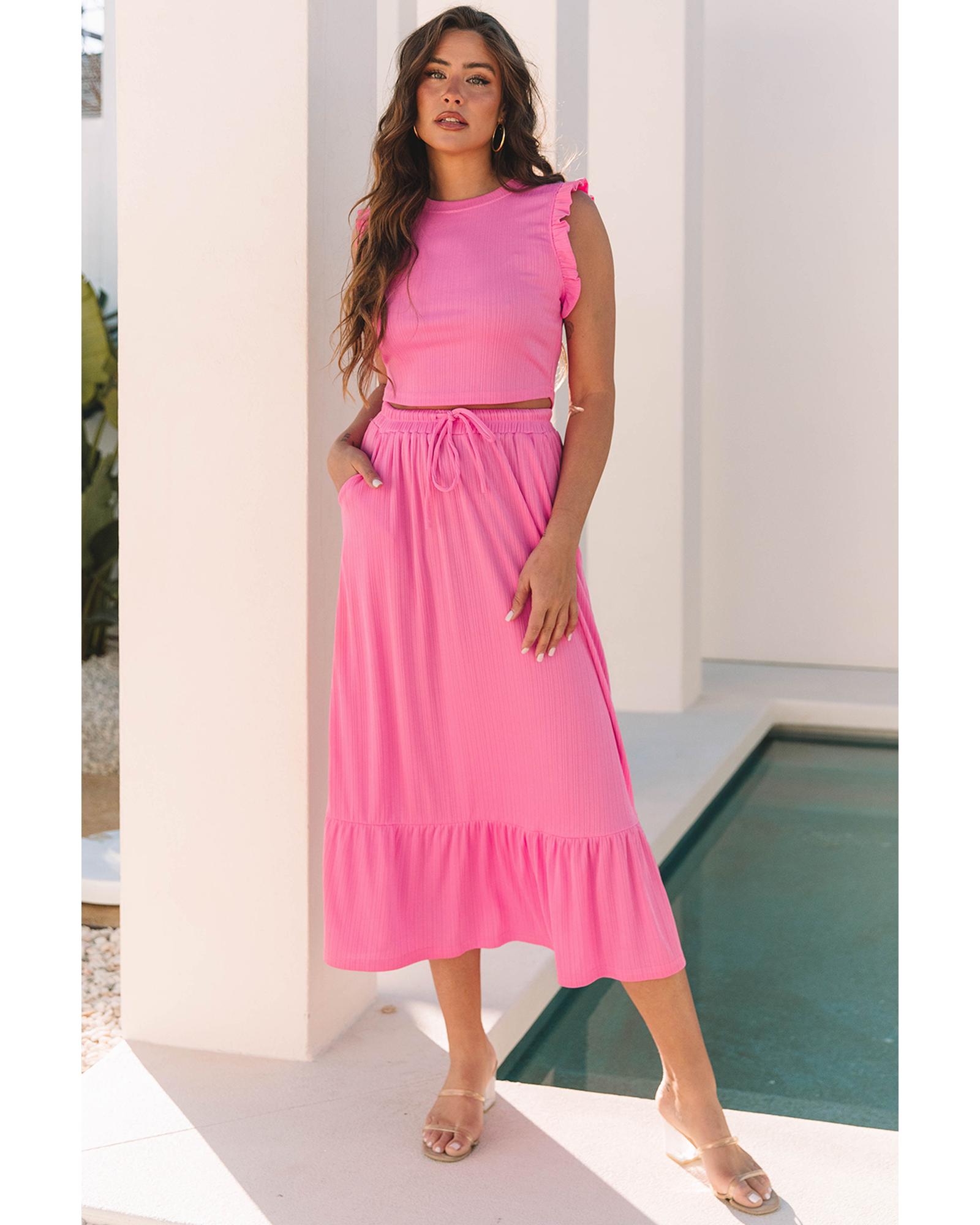 Bonbon Textured Ruffle Trim Crop Vest Lace-up Long Skirt Set – L
