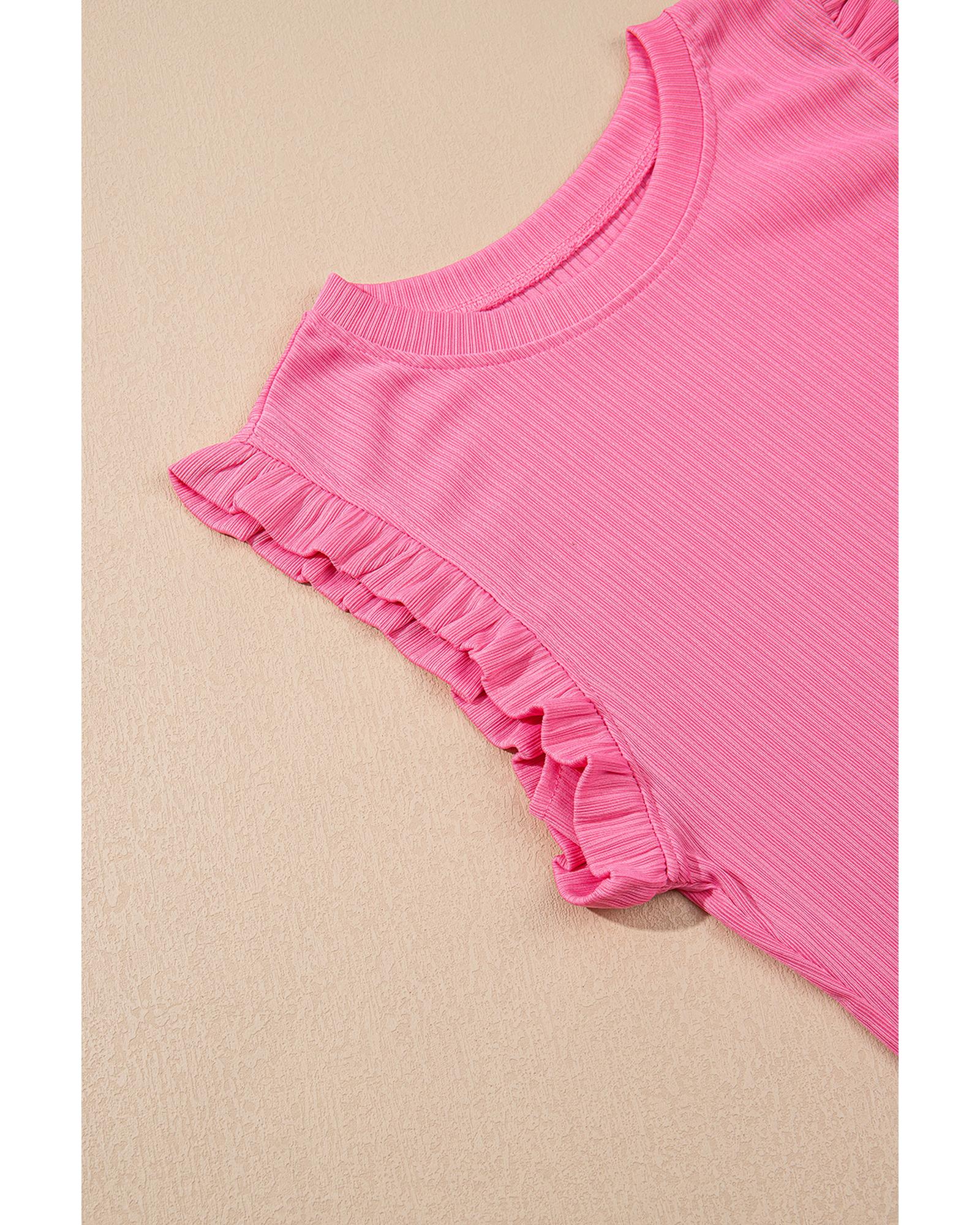 - Crew cut neckline and short flutter sleeves on the crop top