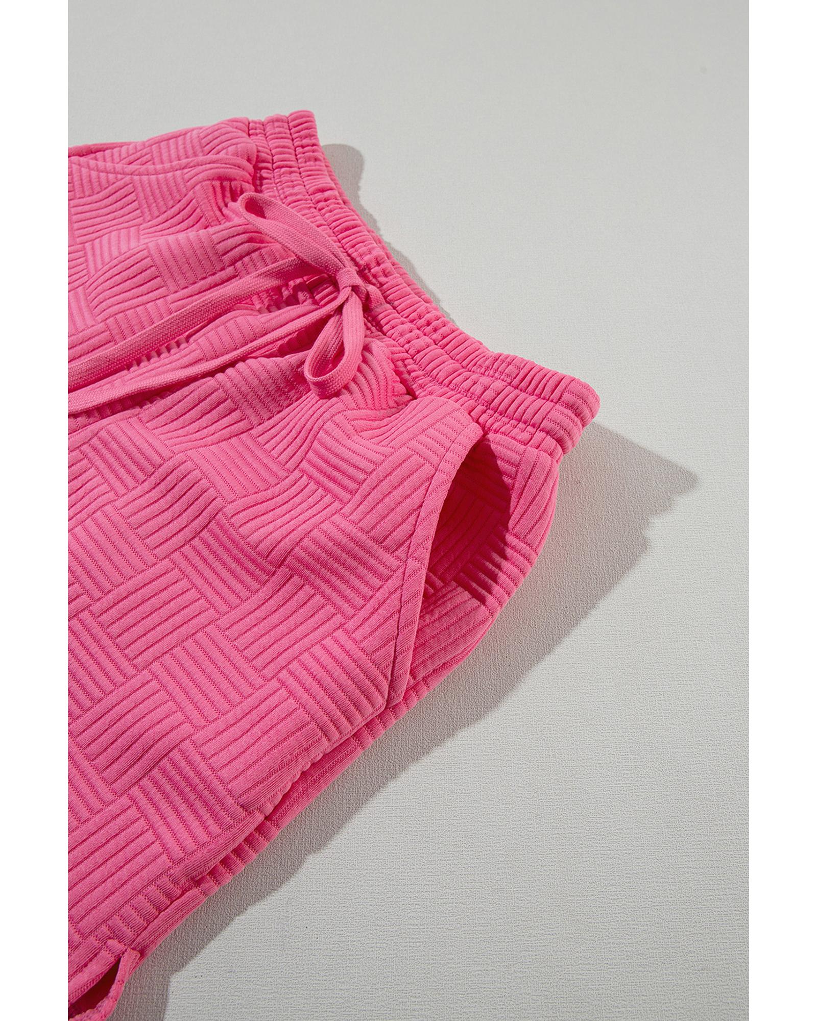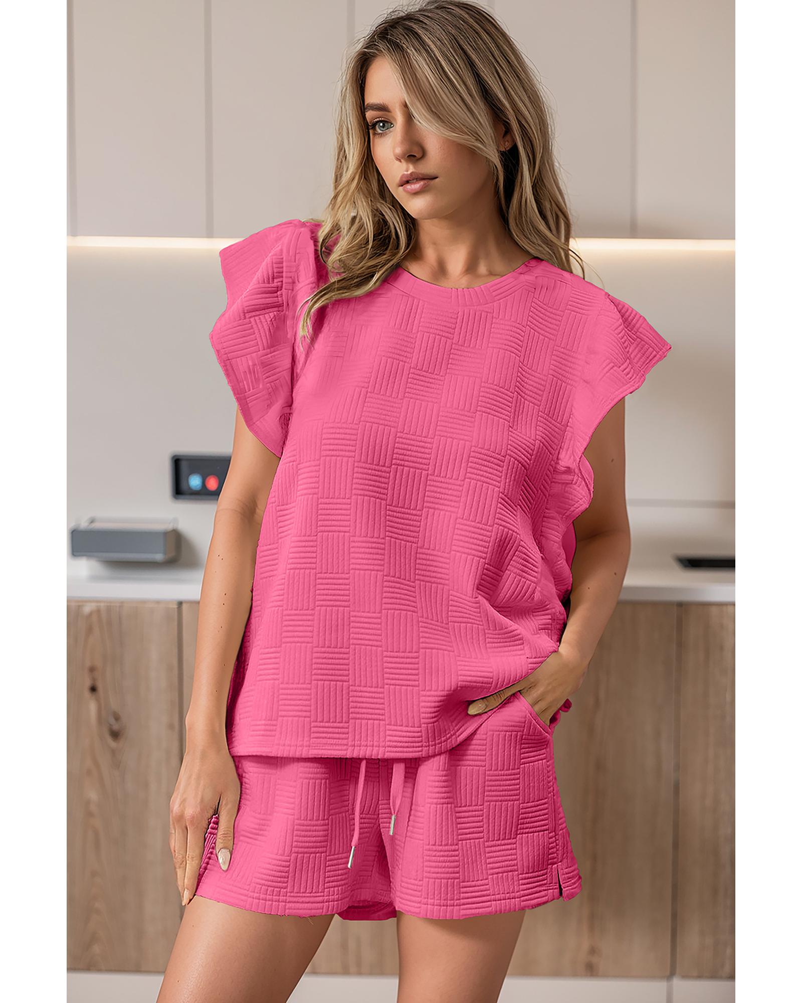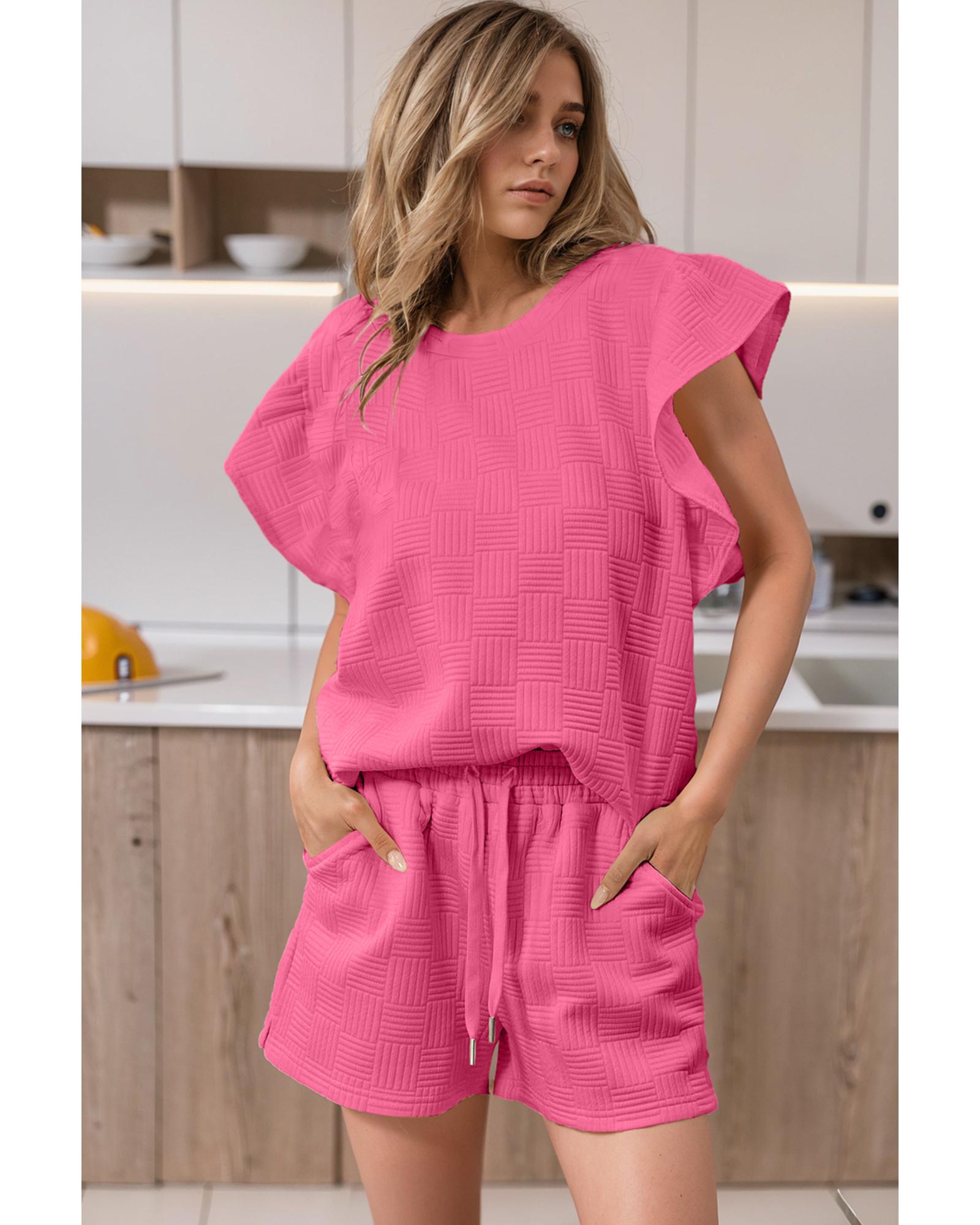 Bonbon Textured Ruffled Sleeve Tee and Drawstring Shorts Set – S