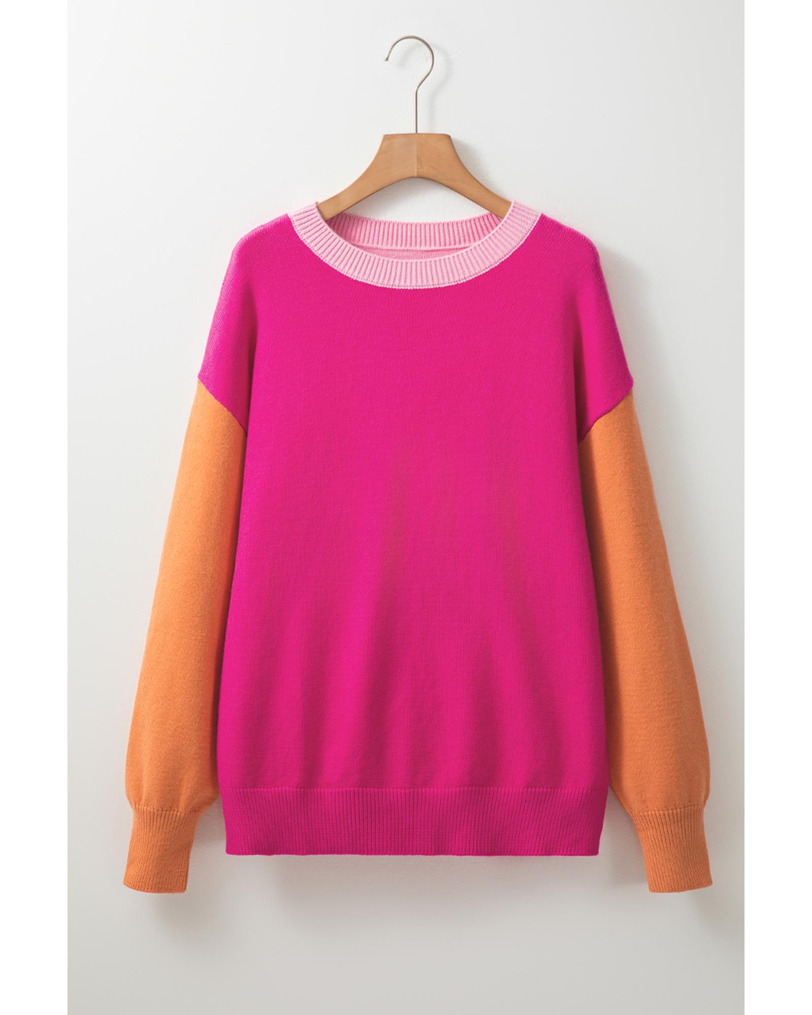 Bonbon Three Tone Contrast Round Neck Loose Sweater – L