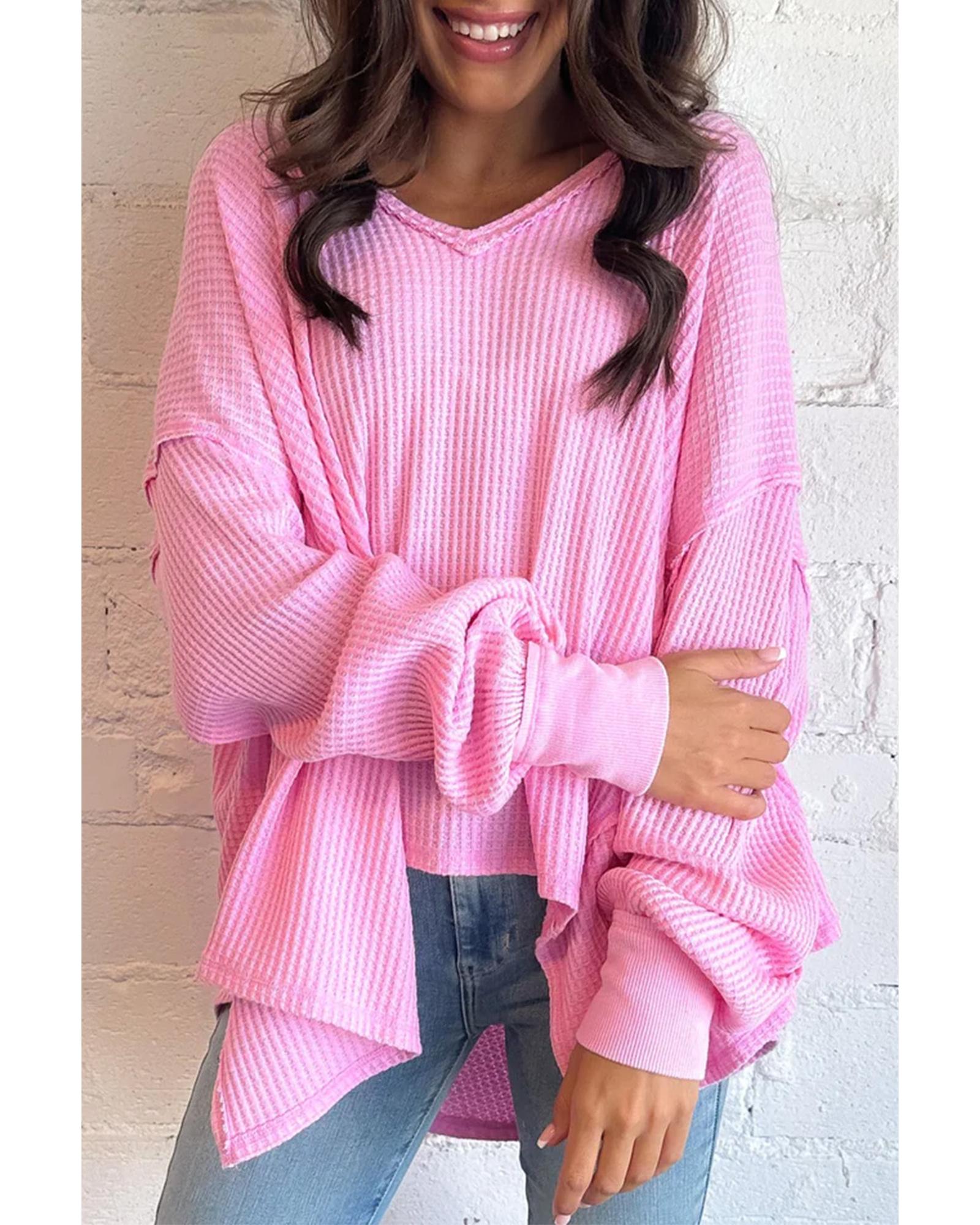 Bonbon Waffle Knit Exposed Seam High Low Top – L