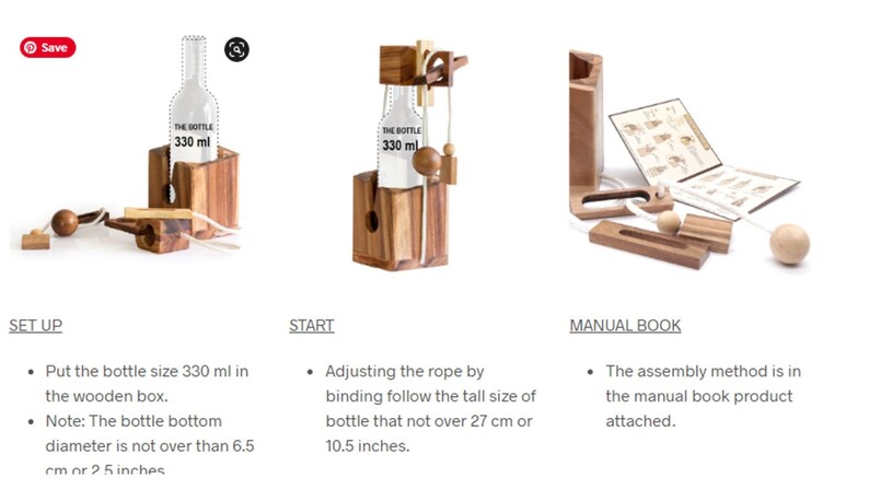 Think outside the wooden box as this adjustable small size bottle of beer gifts wood puzzle is designed to provide an entertaining diversion for everyone to enjoy. In addition to standard beer bottles, use it to fit nonalcoholic beverages, chic olive oil or herb vinegar bottles for the non-beer drinkers or aspiring chefs.