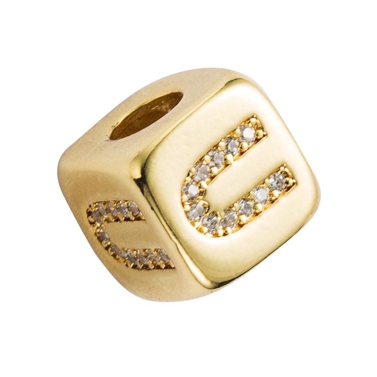 • 1 x Brass Micro Inlaid Couple Red String Pull Diy Bracelet English Letter Beads Style – U