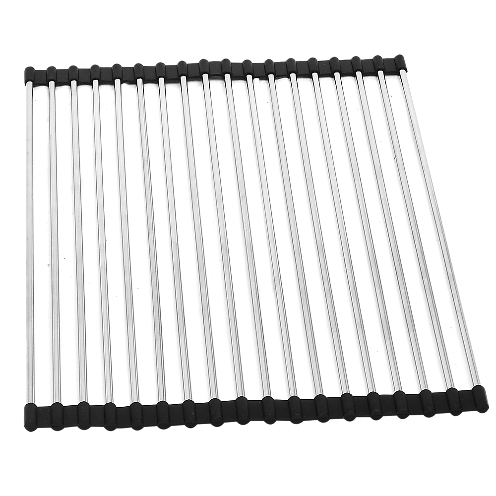 - Foldable dish drying rack. Constructed of stainless steel bars and a flexible silicone frame allowing you to fold it up tightly for storage. Stainless steel bars make it hygienic and easy to clean. Strong enough to hold dishes or pots and pans.