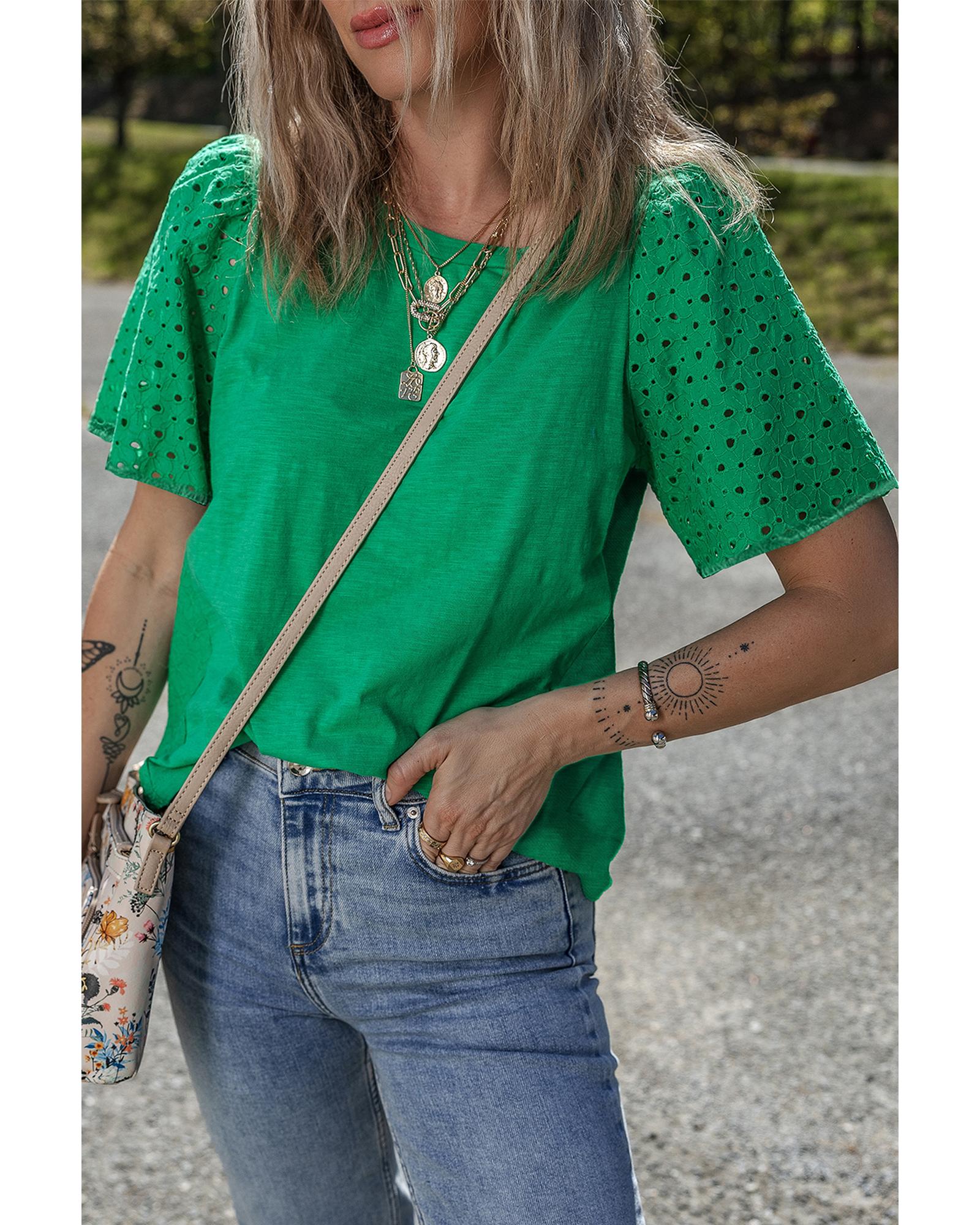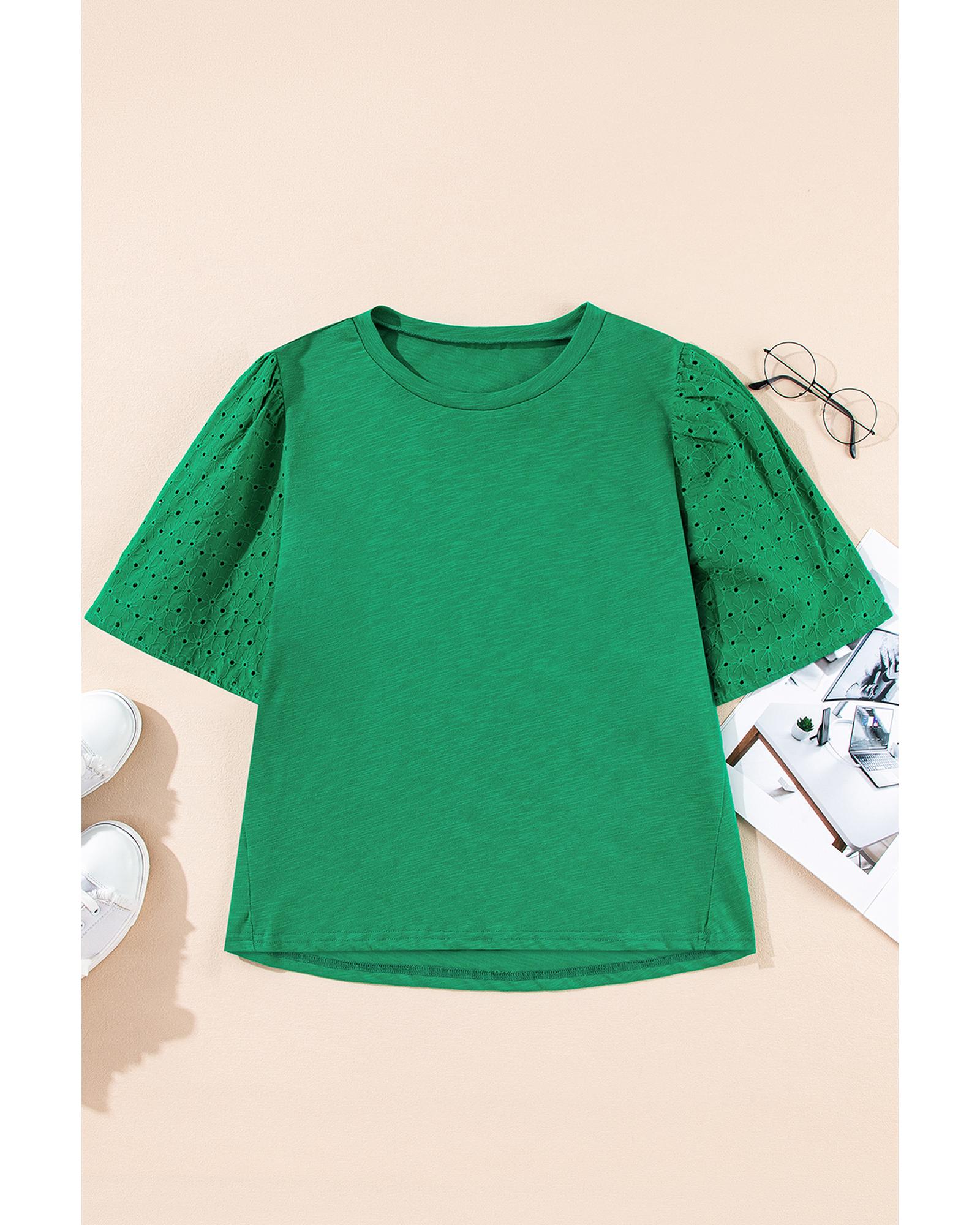 Bright Green Eyelet Embroidered Patchwork Shift Top – M