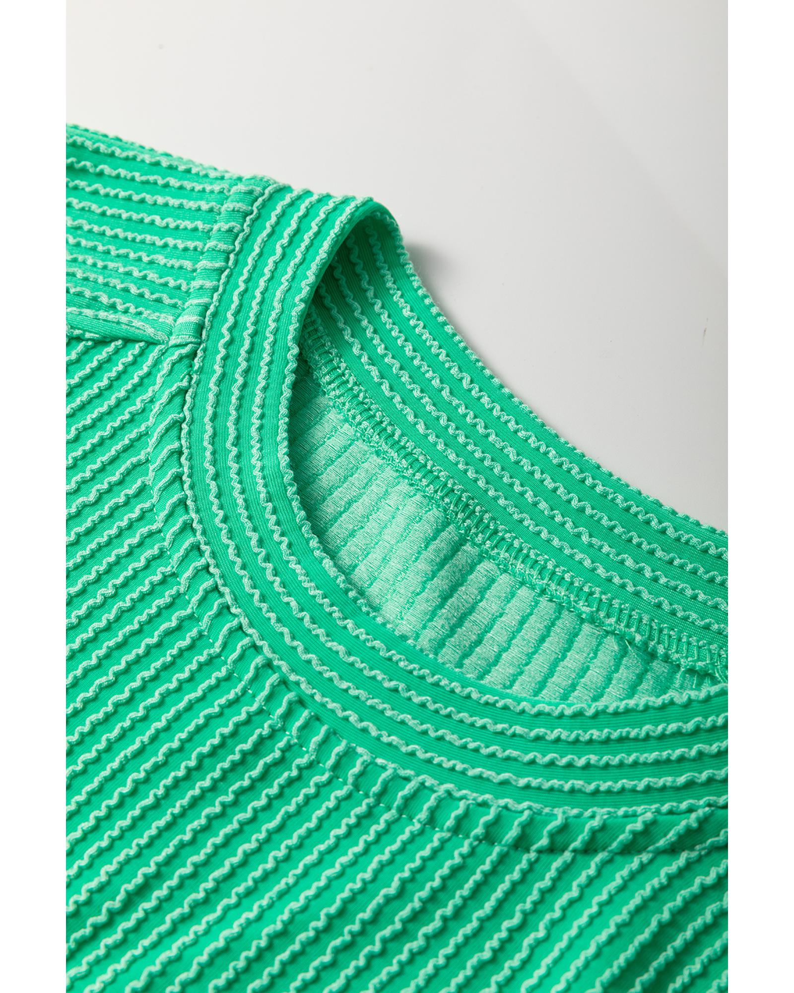 Bright Green Solid Corded Knit Short Sleeve T Shirt and Wide Leg Pants Set – M
