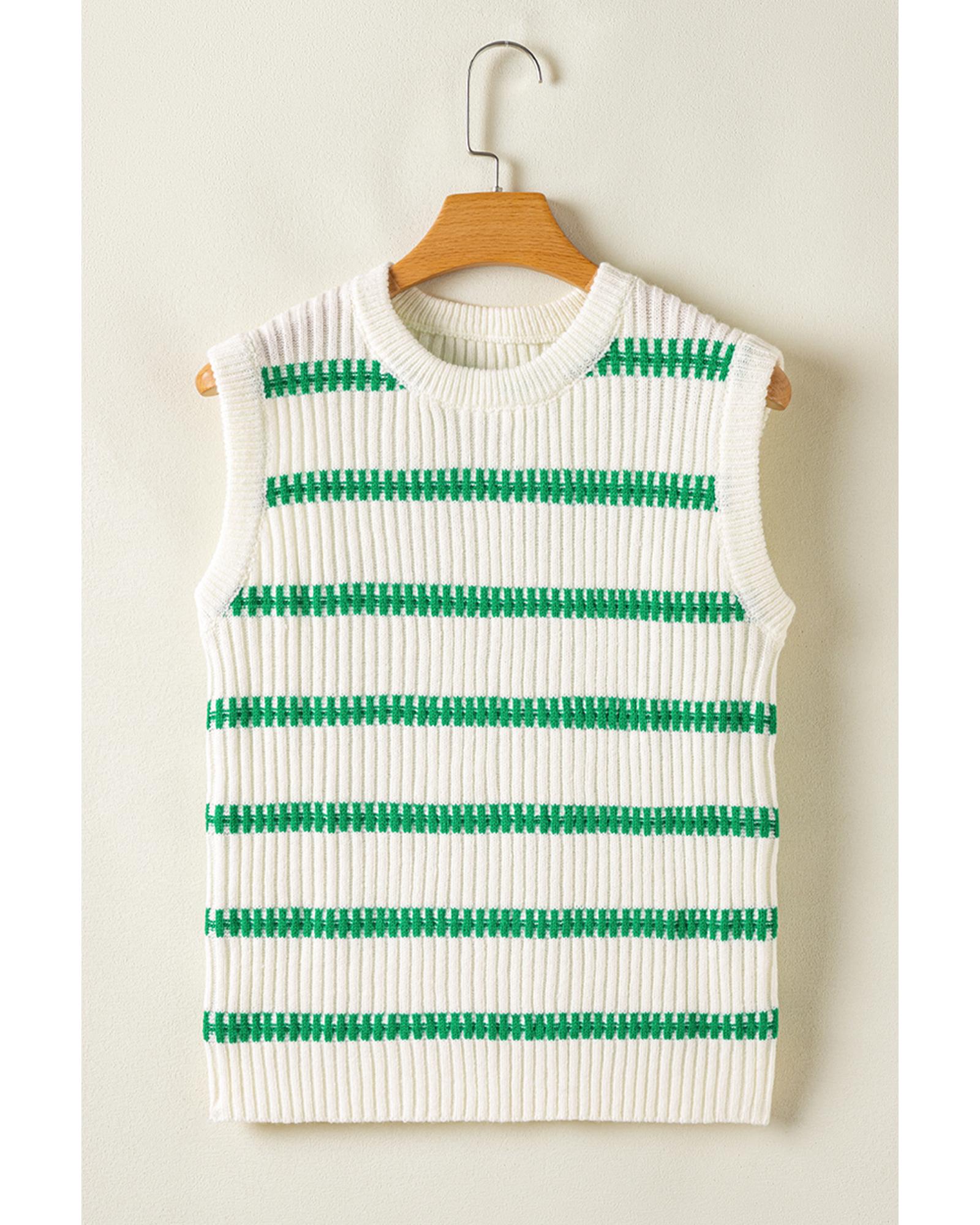Bright Green Striped Round Neck Casual Sweater Vest – S