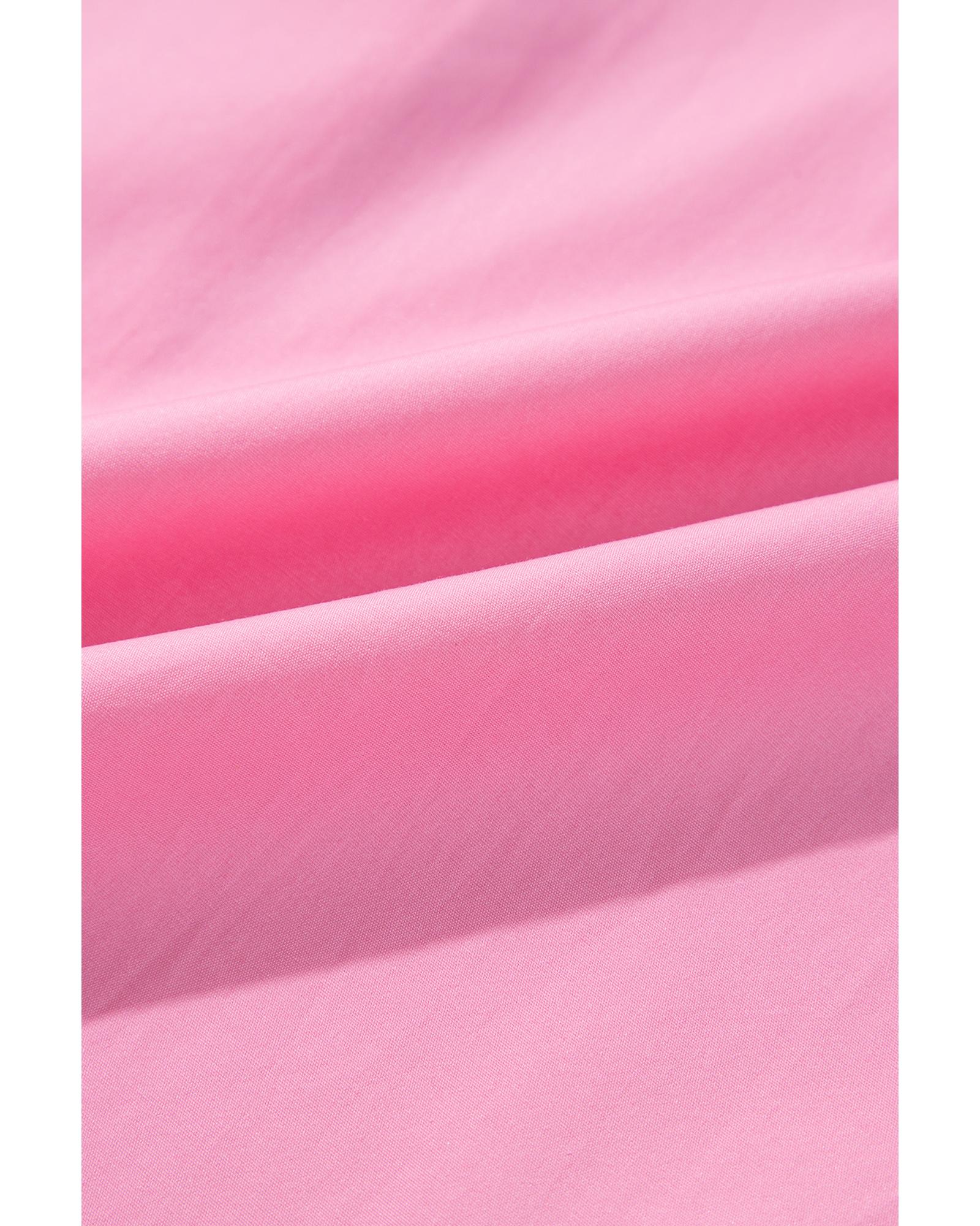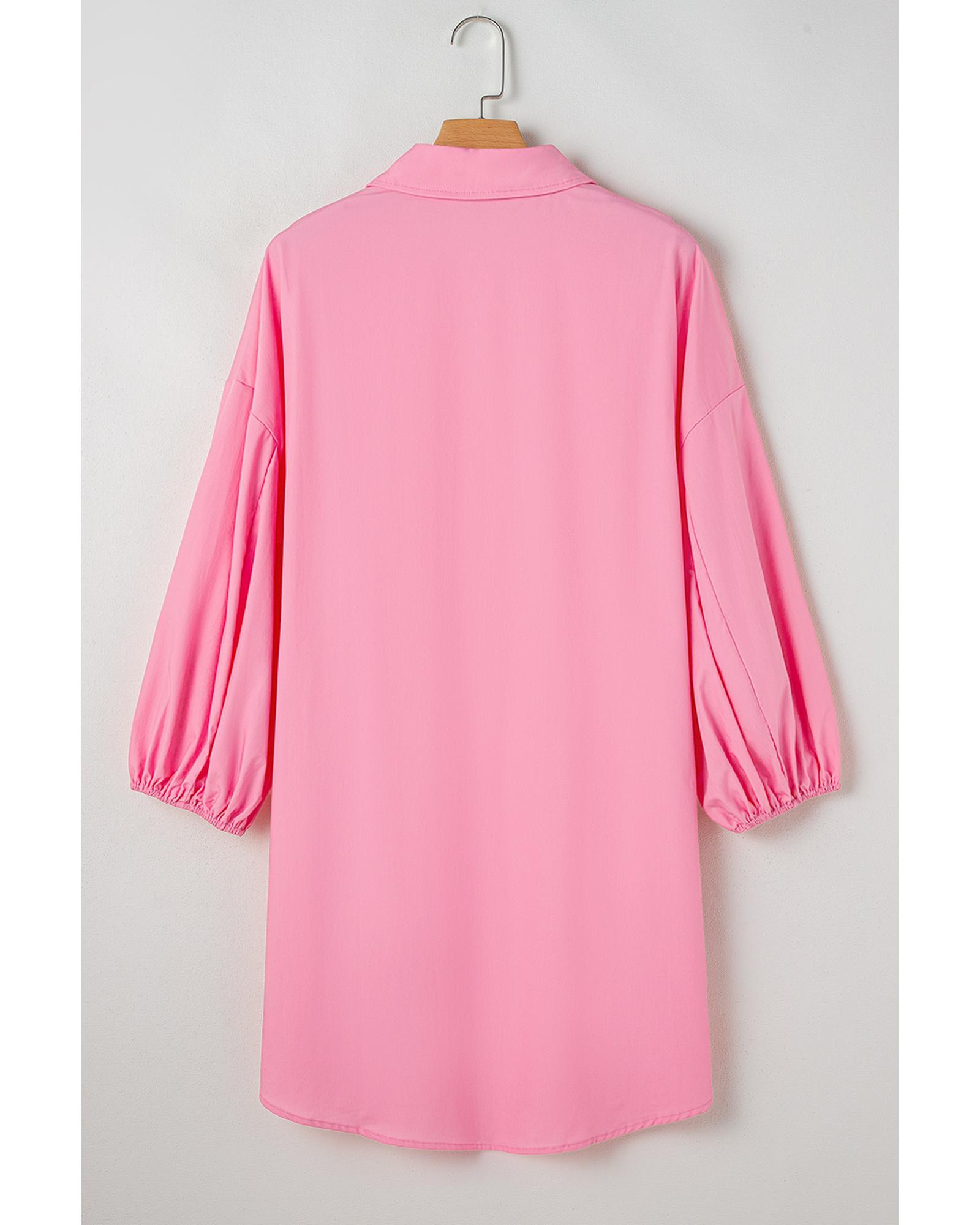 Bright Pink Balloon Sleeve Button Up Mini Shirt Dress – S